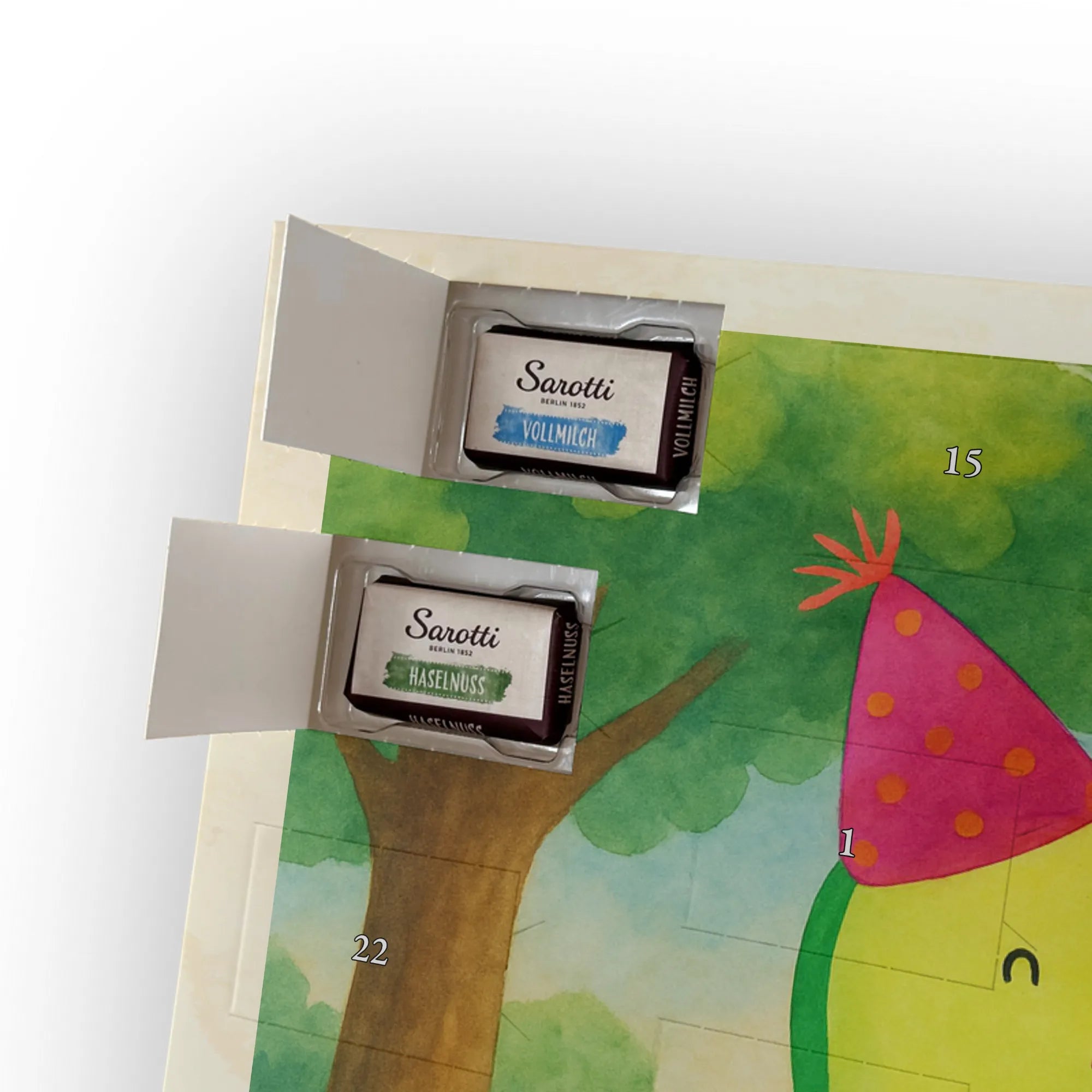 🐼 SCHOKOLADEN-ADVENTSKALENDER: Edler, seidenmatter Druck mit liebevollen Illustrationen.
