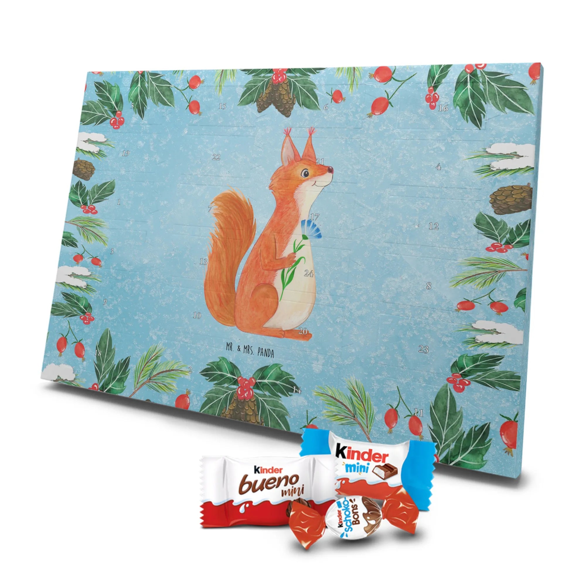 Adventskalender Eichhörnchen Blume - Classic - mit Spruch - Eisblau