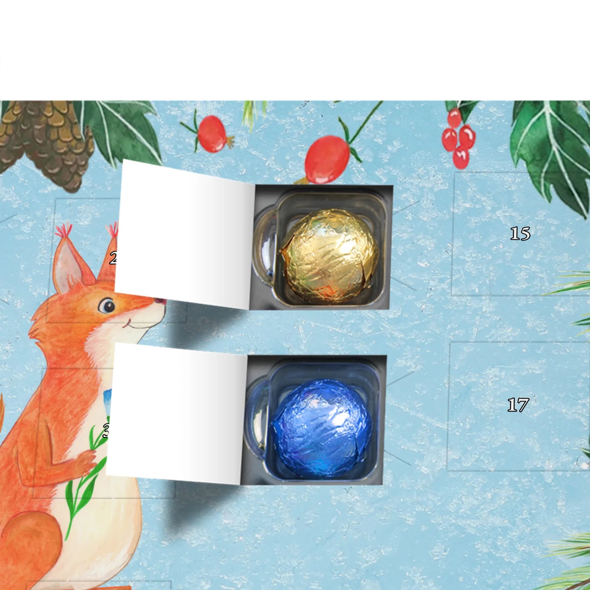 Adventskalender Eichhörnchen Blume - Classic - mit Spruch - Eisblau