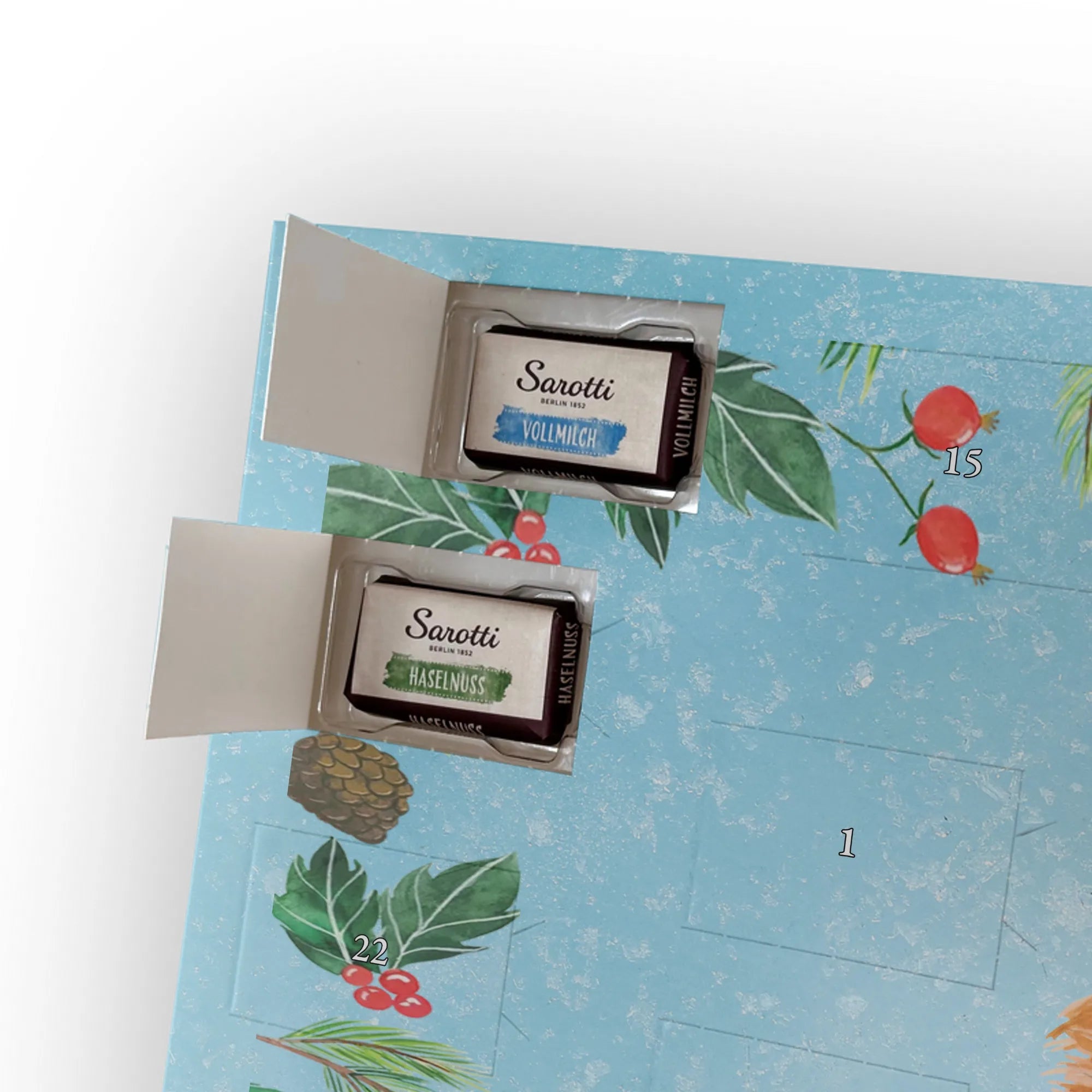 🐼 Schoko-Adventskalender: Liebevolles Design, seidenmatt, brillanter Druck – ein Hingucker.
