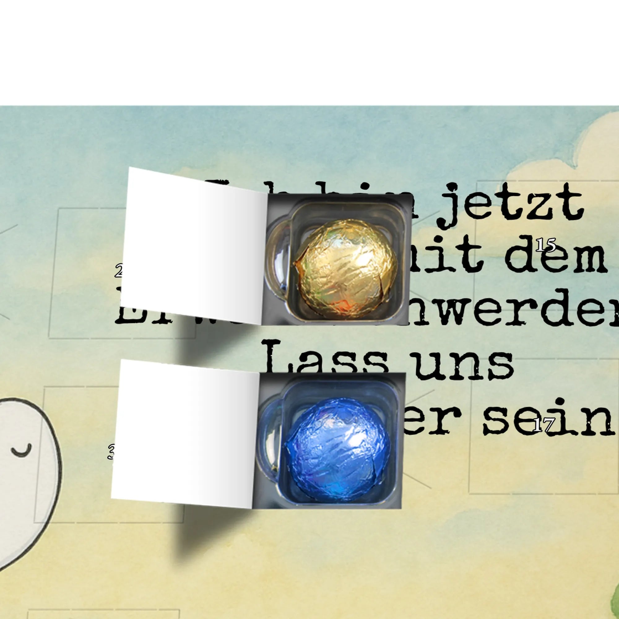 Wunderschöner Adventskalender mit Schokolade von Mr. & Mrs. Panda – für alle, die Advent und Design lieben. Dieser Adventskalender mit Schokolade ist liebevoll bedruckt mit wunderschönen Motiven & Sprüchen von Mr. & Mrs. Panda und ist nicht personalisierbar, aber mit viel Liebe zum Detail gefertigt. Brillante Druckqualität mit seidenmatter Oberflächenveredelung sorgt für einen edlen Look, und die bedruckten Seitenflächen geben dem Kalender eine besondere Optik. Maße: 233 mm x 178 mm x 24 mm. Dank seiner stabilen Verarbeitung kannst du ihn aufstellen oder ganz einfach aufhängen – Besonderheit: kann aufgehängt oder aufgestellt werden. Gefüllt mit MARKENNAMEN Schokolade und leckeren Schokoladenkugeln, bringt er jeden Tag ein kleines Glückserlebnis. Wichtige Hinweise: (Kann Spuren von Haselnüssen, Mandeln, Gluten und Soja enthalten!), bitte kühl und trocken lagern. Ob als Geschenk, Mitbringsel oder Adventsdeko – dieser Kalender zaubert ein Lächeln und sorgt für gemütliche Vorfreude. Viel Freude beim Entdecken der süßen Überraschungen wünscht dir Mr. & Mrs. Panda!