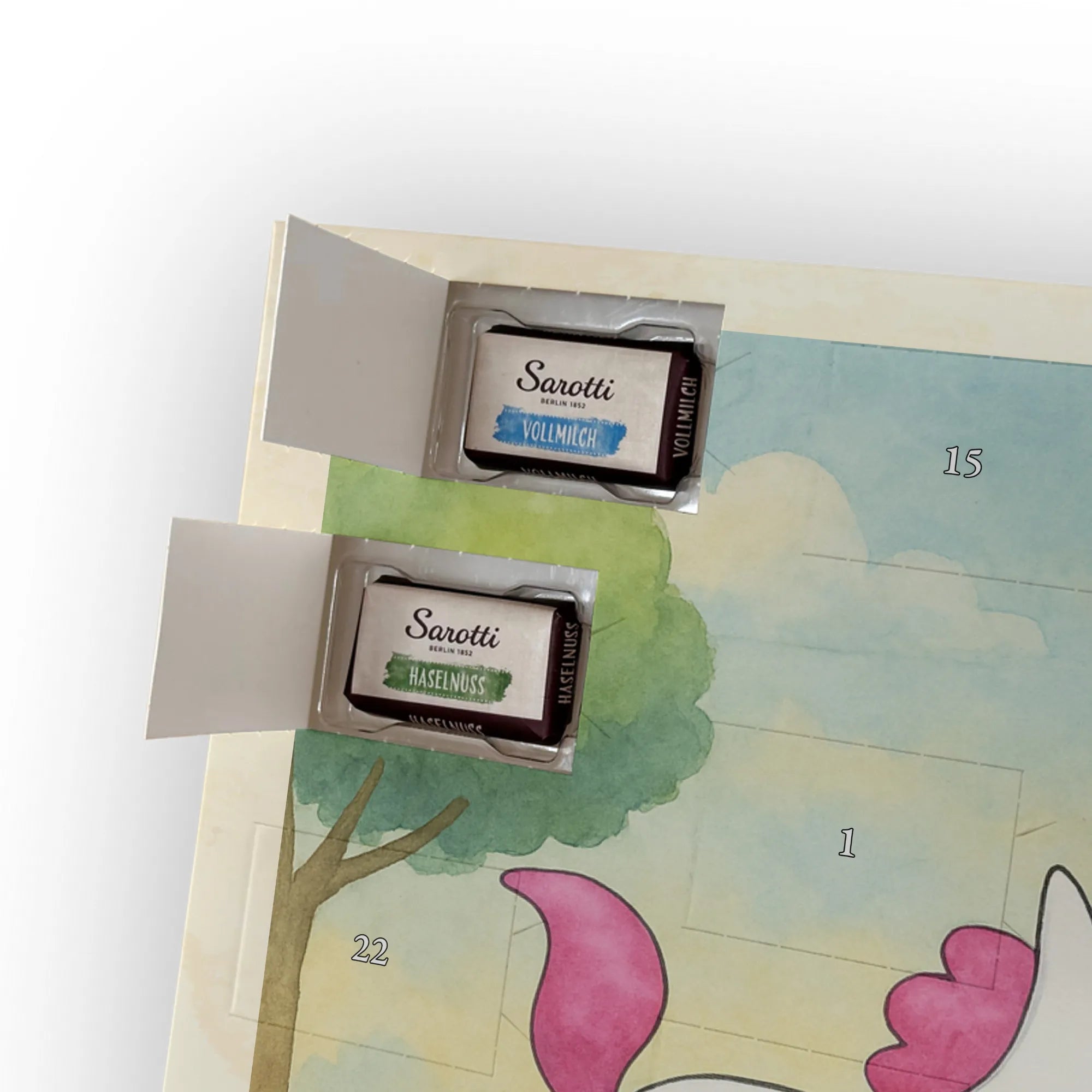 Mach die Adventszeit süßer: Entdecke unseren bedruckten Schokoladen Adventskalender von Mr. & Mrs. Panda und verschenke täglich Freude!