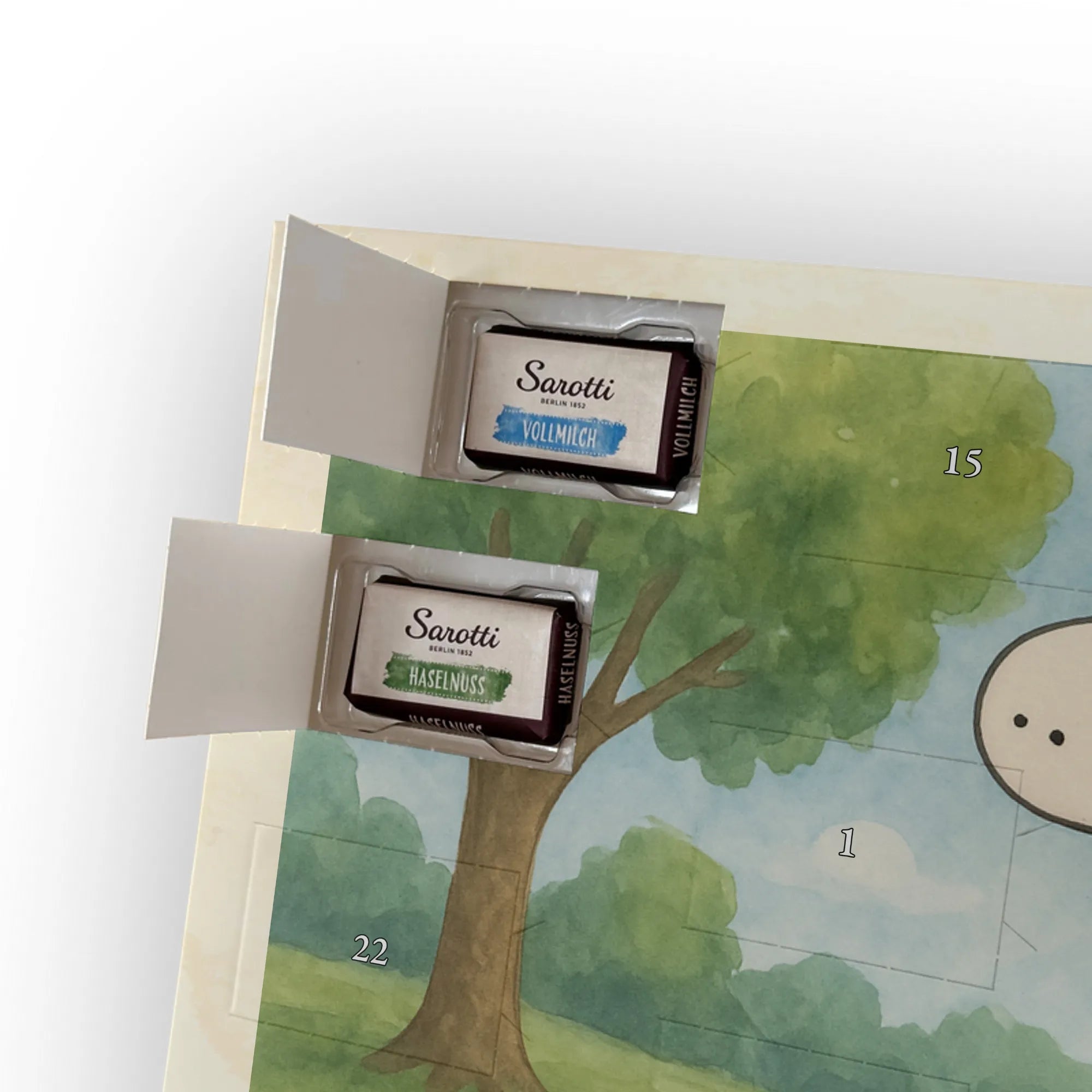 🐼 Schoko-Adventskalender: Liebevolles Design, seidenmatt, brillanter Druck – ein Hingucker.