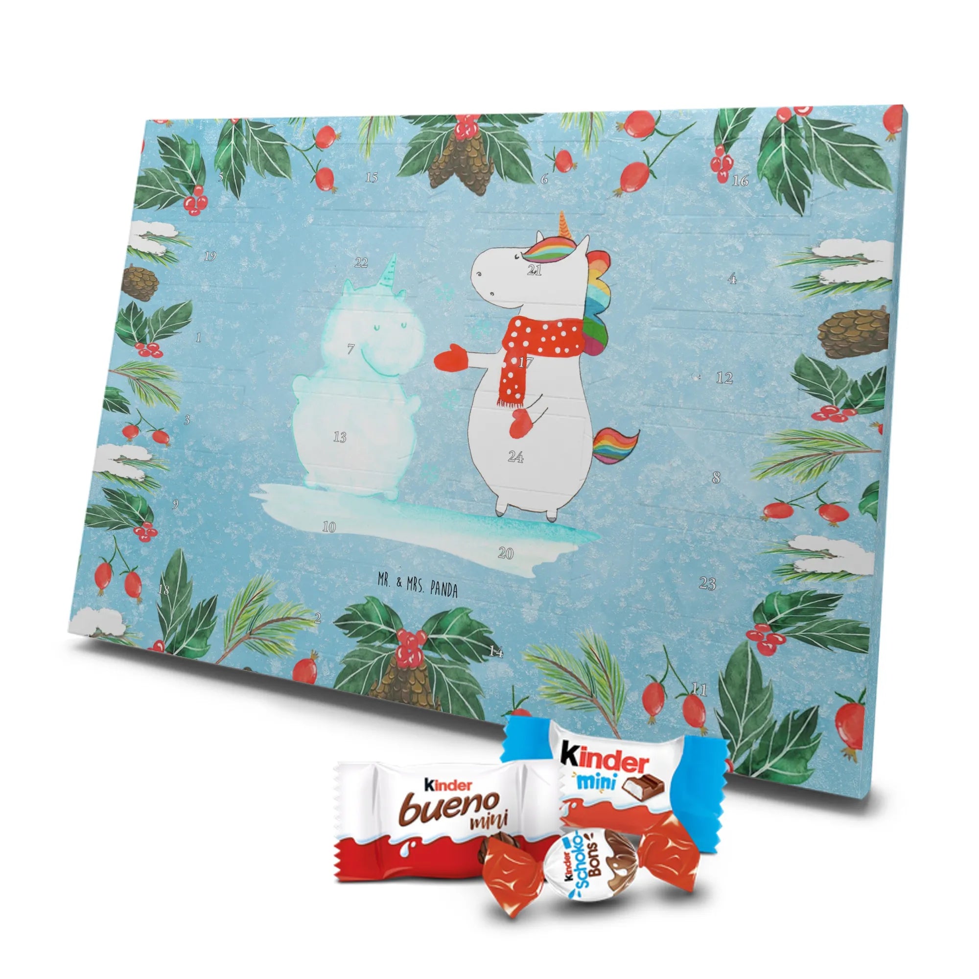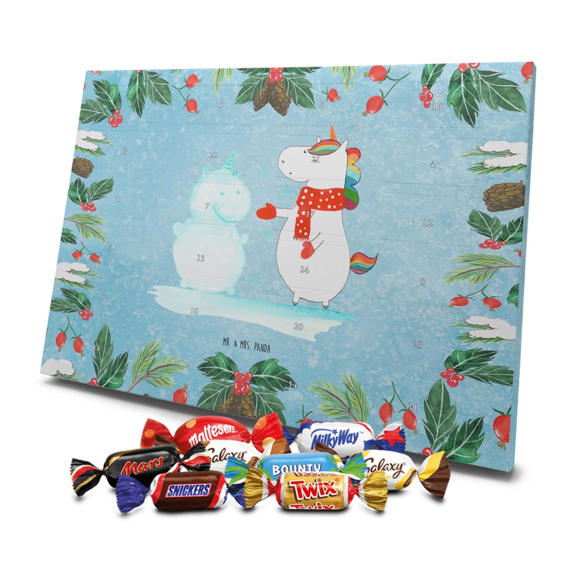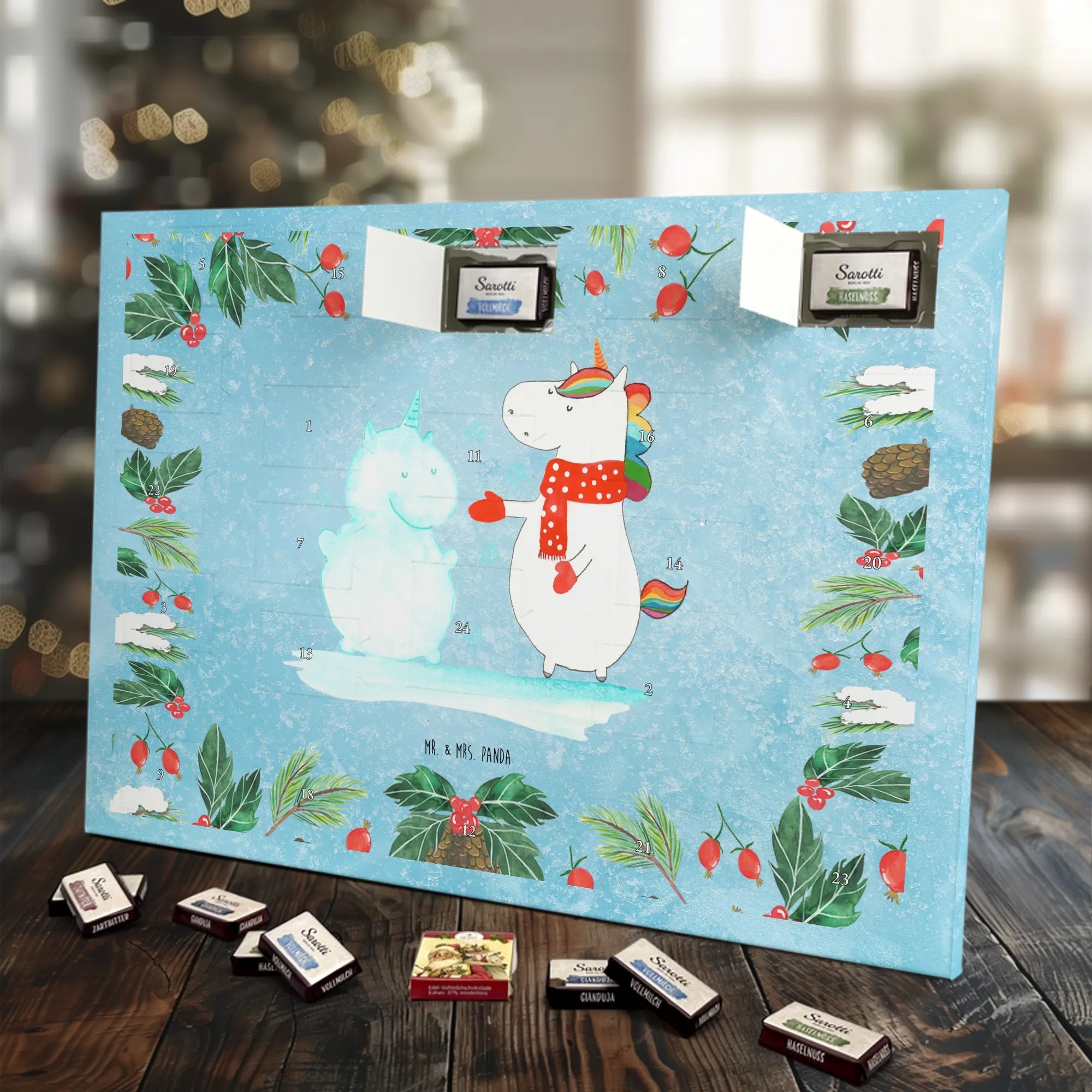 Schoko Adventskalender Einhorn Schneemann - Classic - mit Spruch - Eisblau