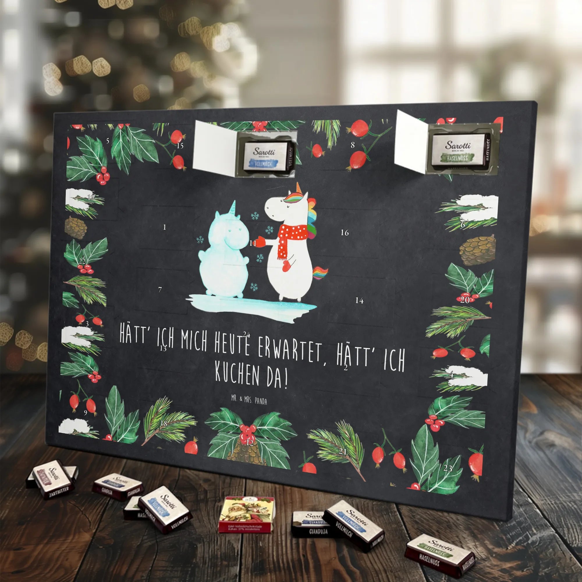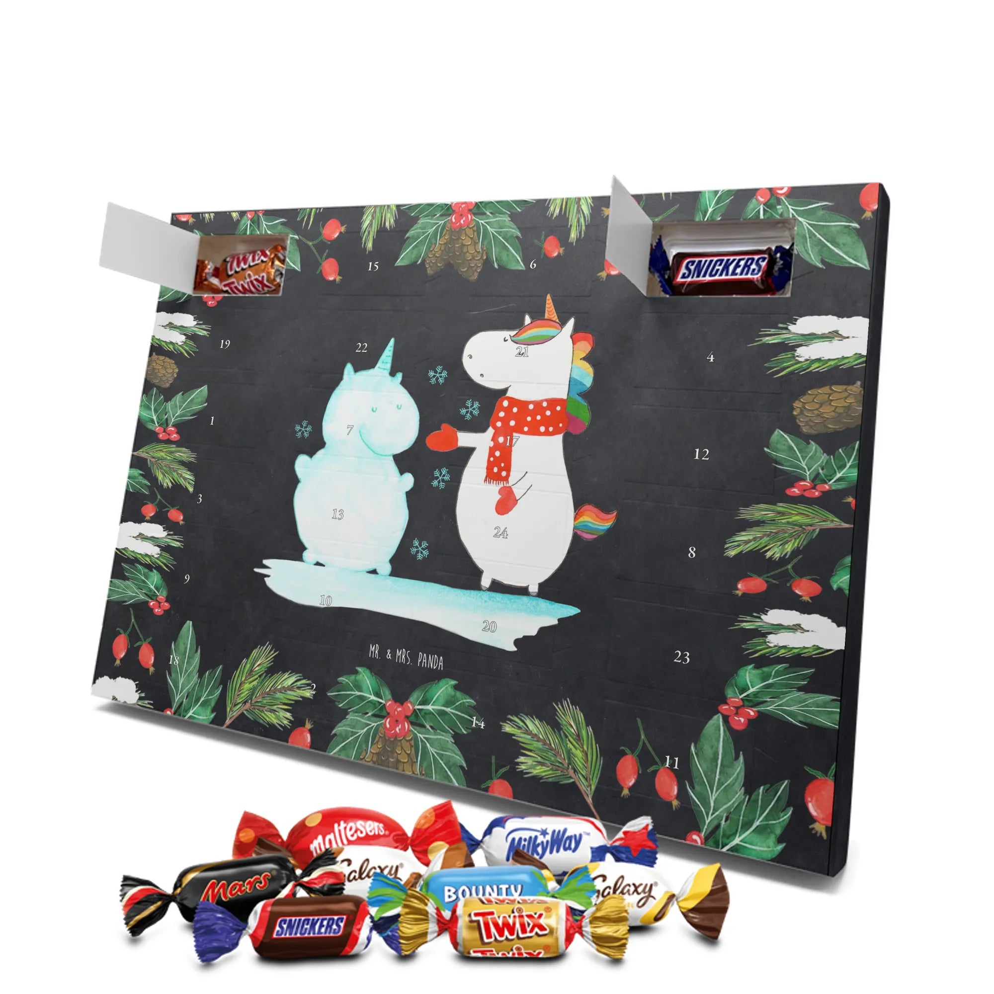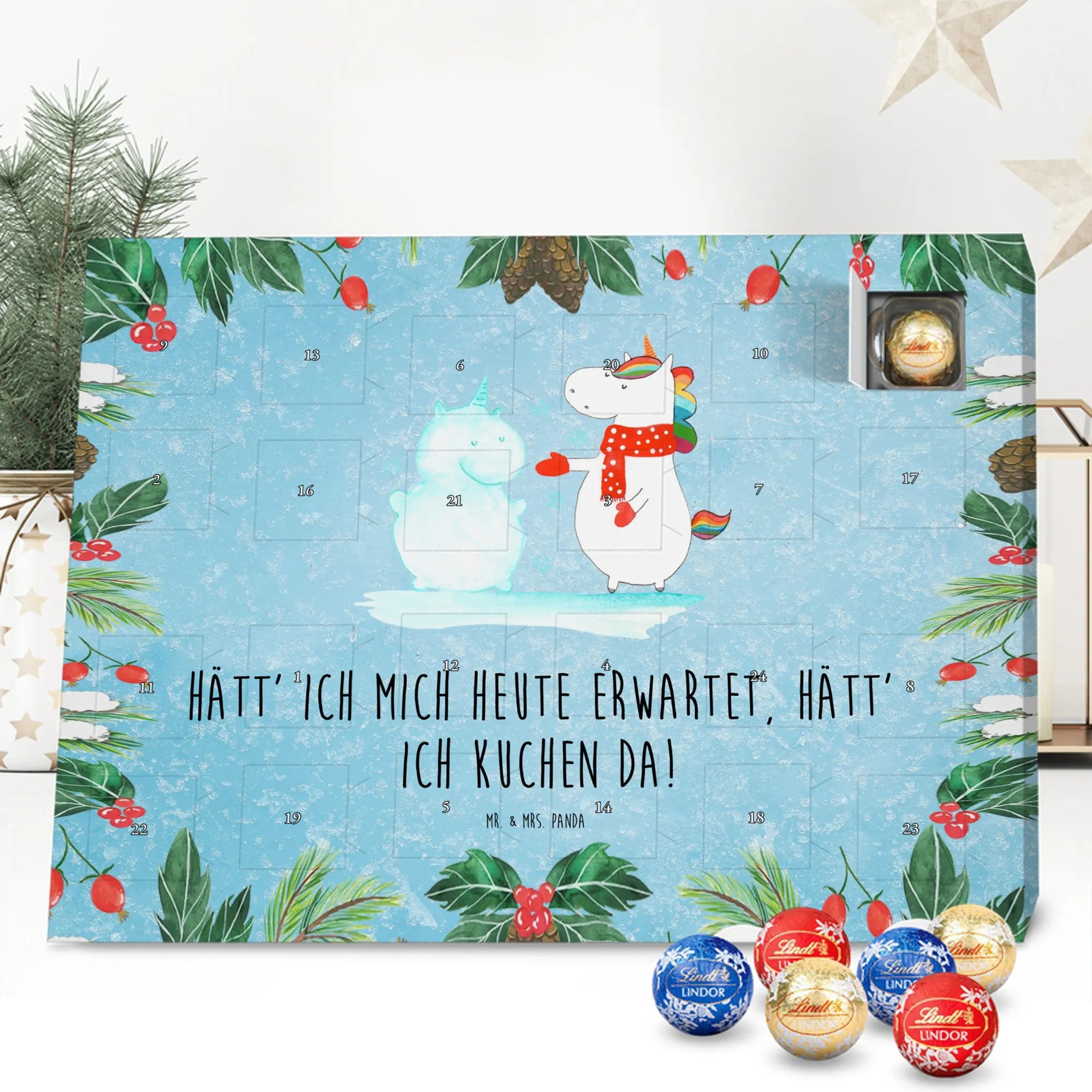 Schoko Adventskalender Einhorn Schneemann - Classic - mit Spruch - Eisblau