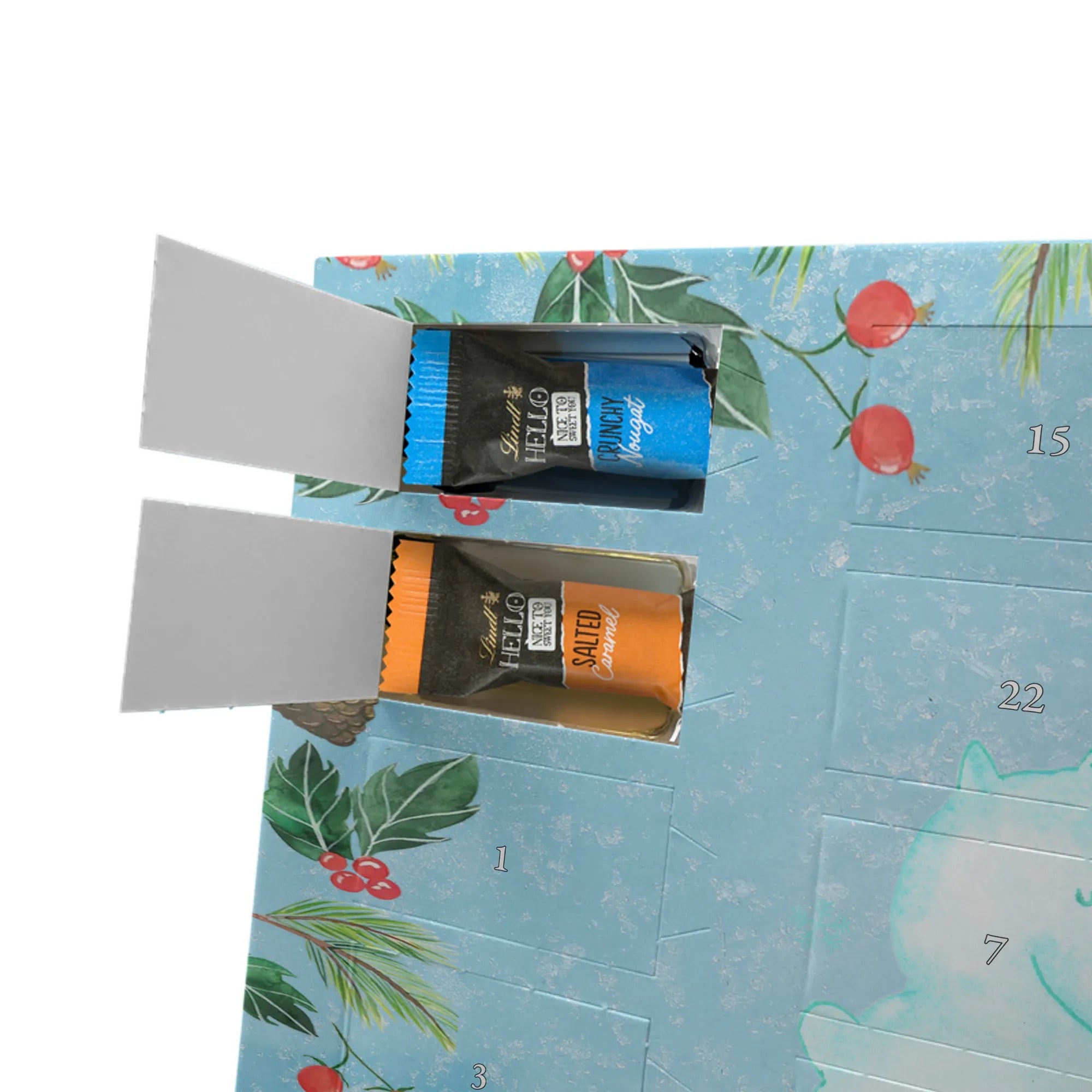 Wunderschöner Schoko Adventskalender von Mr. & Mrs. Panda – perfekt, wenn du dir oder deinen Liebsten die Adventszeit mit süßen Überraschungen versüßen willst. Unser liebevoll gestalteter Schokoladen Adventskalender ist bedruckt mit bezaubernden Motiven und frechen Sprüchen von Mr. & Mrs. Panda und sorgt jeden Tag für ein Lächeln. Der Kalender ist nicht personalisierbar, dafür aber in brillanter Druckqualität mit seidenmatter Oberflächenveredelung gefertigt. Auch die Seitenflächen sind vollständig bedruckt, was dem Design noch mehr Tiefe verleiht. Maße: 325 mm x 225 mm x 27 mm. Besonders praktisch: Der Kalender kann aufgehängt oder aufgestellt werden – so findest du immer den idealen Platz bei dir zu Hause. Gefüllt mit Lindt Hello Schokolade: 24 einzeln verpackte Schokoladen Mini Sticks in vier verschiedenen Sorten – Karamell-Schokoladenkuchen, Kekse, Knuspriger Nougat und Erdbeer-Cheesecake. Zutaten und Allergene findest du auf der Verpackung; wichtige Hinweise: enthält Milcheiweiß, Milchzucker, Soja, Weizen und Haselnüsse, kann Mandeln und andere Schalenfrüchte enthalten. Dieser Adventskalender ist eine liebevolle Geschenkidee für Freunde, Familie und alle Schoko-Fans, die jeden Tag bis Weihnachten mit feinem Schoko-Genuss feiern möchten.
