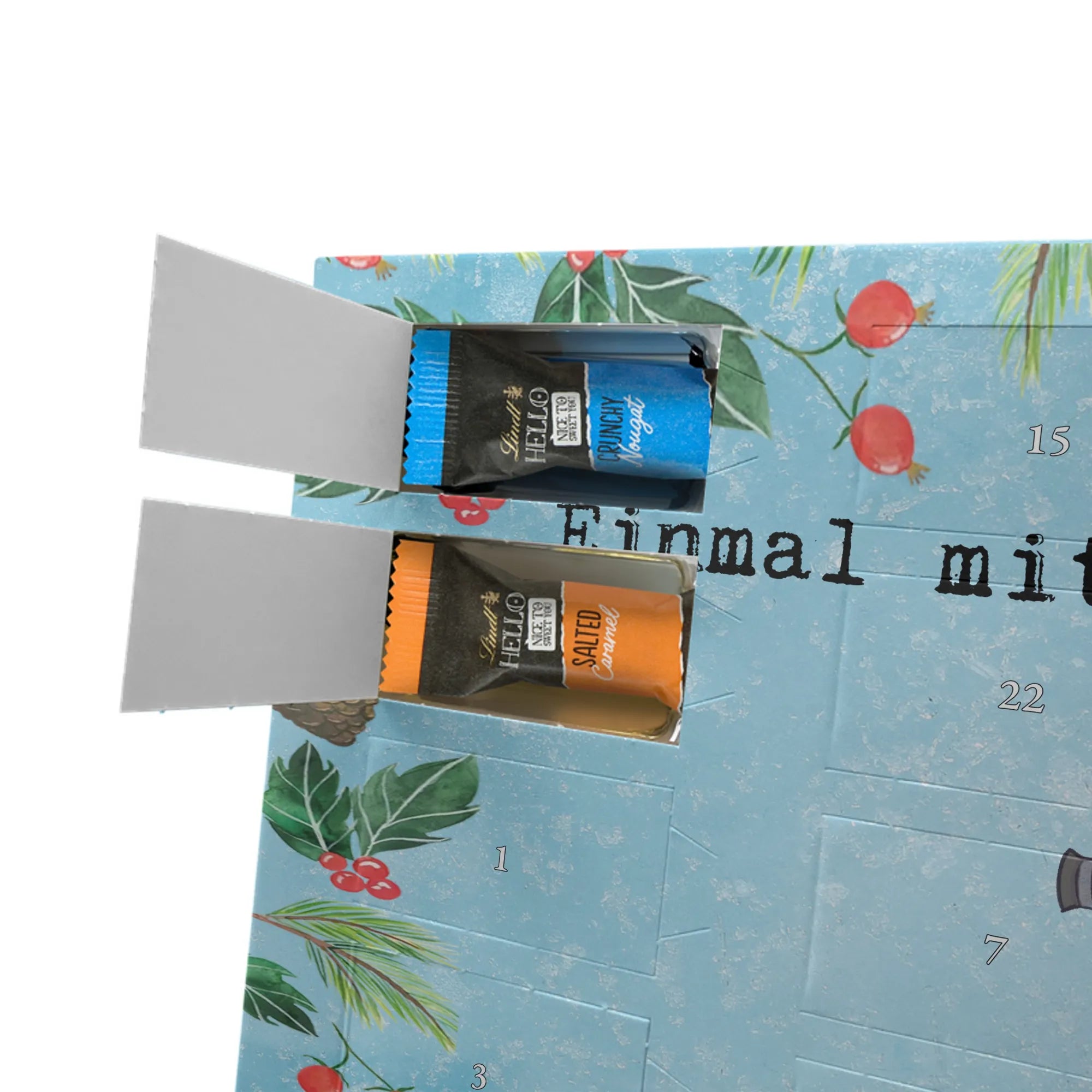 Unser Adventskalender Schokolade von Mr. & Mrs. Panda bringt dir jeden Tag eine kleine Freude. Das Design ist liebevoll bedruckt mit unseren typischen Motiven und lustigen Sprüchen – ein echter Blickfang in deinem Zuhause. Der Kalender ist nicht personalisierbar, überzeugt aber durch brillante Druckqualität und seidenmatte Oberflächenveredelung. Zusätzlich sind die Seitenflächen bedruckt, sodass das Motiv rundum zur Geltung kommt. Maße: 325 mm x 225 mm x 27 mm. Dank seines cleveren Aufhängemechanismus kannst du ihn entweder an die Wand hängen oder frei aufstellen. Gefüllt mit Lindt Hello Schokolade: 24 einzeln verpackte Schokoladen Mini Sticks in den Sorten Karamell-Schokoladenkuchen, Kekse, Knuspriger Nougat und Erdbeer-Cheesecake. Zutatenliste enthält u. a. Zucker, Kakaomasse, Vollmilchpulver, Haselnüsse; Allergene: Milcheiweiß, Milchzucker, Soja, Weizen und Haselnüsse, kann Mandeln und andere Schalenfrüchte enthalten. Perfekt als Geschenk für Kinder, Freunde oder als kleines Mitbringsel in der Adventszeit.