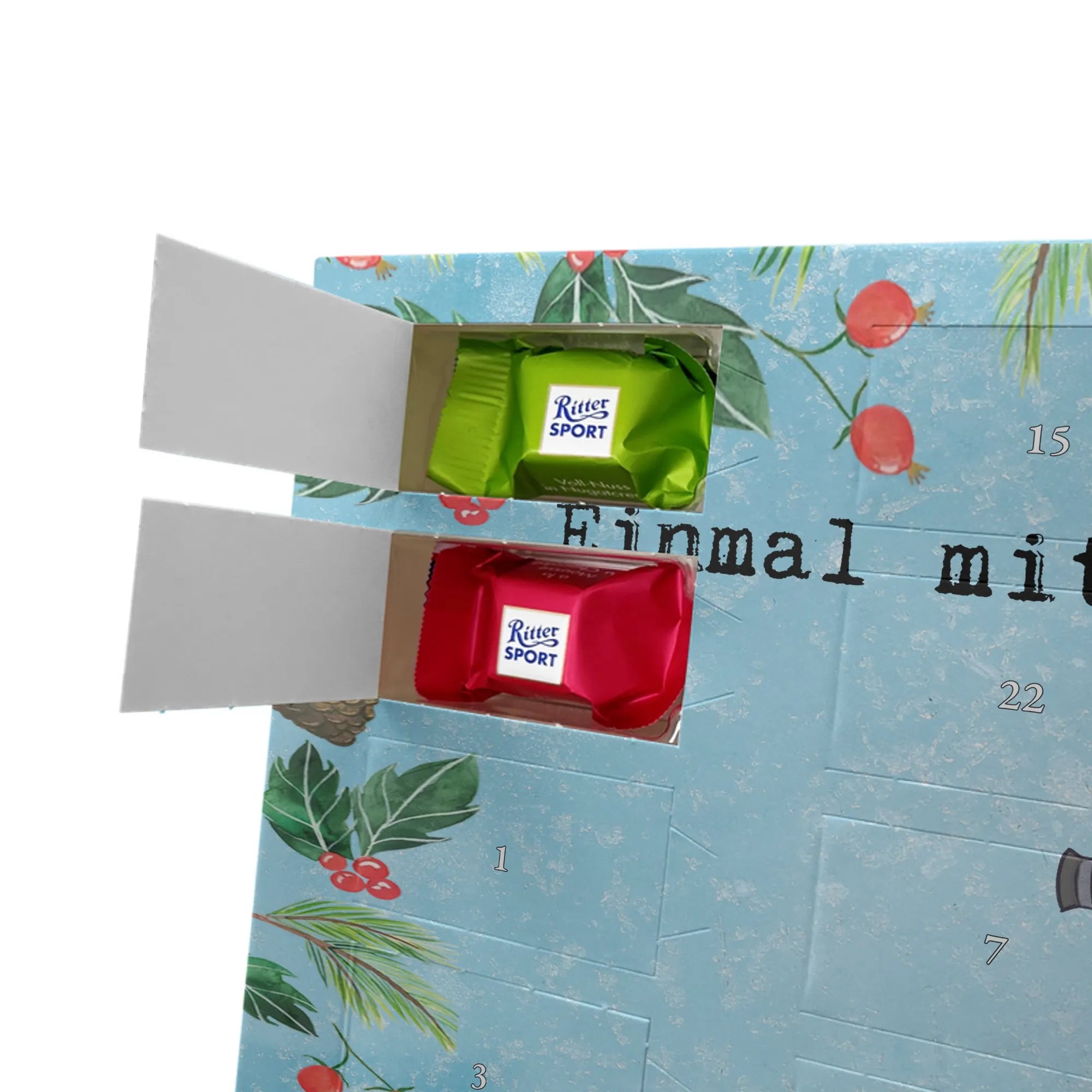 Adventskalender Schokolade von Mr. & Mrs. Panda – eine liebevolle Kombination aus hübschem Design und süßem Inhalt. Der Kalender ist bedruckt mit wunderschönen Motiven & Sprüchen von Mr. & Mrs. Panda und besticht durch brillante Druckqualität mit seidenmatter Oberflächenveredelung. Die Seitenflächen sind ebenfalls bedruckt, wodurch der Kalender rundum ein Hingucker ist. Er ist nicht personalisierbar. Maße: 325 mm x 225 mm x 27 mm. Besonders praktisch: Du kannst ihn sowohl aufgehängt als auch aufgestellt nutzen, je nachdem, wo er bei dir am schönsten wirkt. Gefüllt ist der Kalender mit Ritter Sport Schokowürfeln in verführerischen Sorten – Mousse au Chocolat, Schoko Crisp, Voll-Nuss in Nougatcreme, Karamell Duo, Joghurt und Erdbeer-Joghurt. Wichtiger Hinweis: Es handelt sich um einen Kalender gefüllt mit Ritter Sport Schokolade, nicht um einen Kalender der Marke Ritter Sport. Schenke deinen Liebsten oder dir selbst tägliche Schokoglücksmomente mit diesem charmanten Adventskalender.