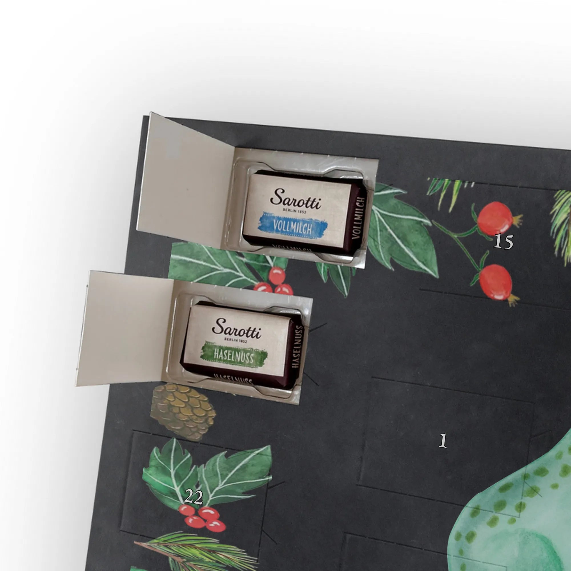 Mach die Vorweihnachtszeit besonders süß mit unserem Schoko-Adventskalender von Mr. & Mrs. Panda. Fröhliche Illustrationen und liebe Sprüche schmücken Vorder- und Seitenflächen, gedruckt in brillanter Qualität und veredelt mit einer seidenmatten Oberfläche für ein warmes, elegantes Finish. Der Kalender ist nicht personalisierbar, überzeugt dafür durch praktische Nutzung: zum Aufhängen oder Aufstellen geeignet. Hinter den 24 Türchen verbergen sich einzeln verpackte Schokoladentäfelchen in vier köstlichen Geschmacksrichtungen – Vollmilch, Nougat, Zartbitter und Haselnuss – von Sarotti® und Confiserie Heidel®. Insgesamt liefert der Kalender 107 g Markenschokolade. Maße: 355 mm x 245 mm x 11 mm – ideal, um Adventsfreude dekorativ zu präsentieren. Verschenke Liebe und Genuss in einem schönen Design, das sich wunderbar in jede Weihnachtsecke einfügt. Mr. & Mrs. Panda wünscht dir eine gemütliche Adventszeit voller kleiner, süßer Überraschungen.