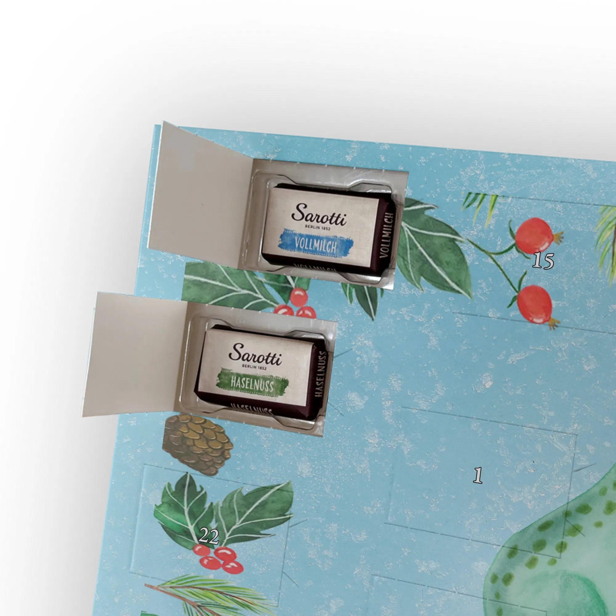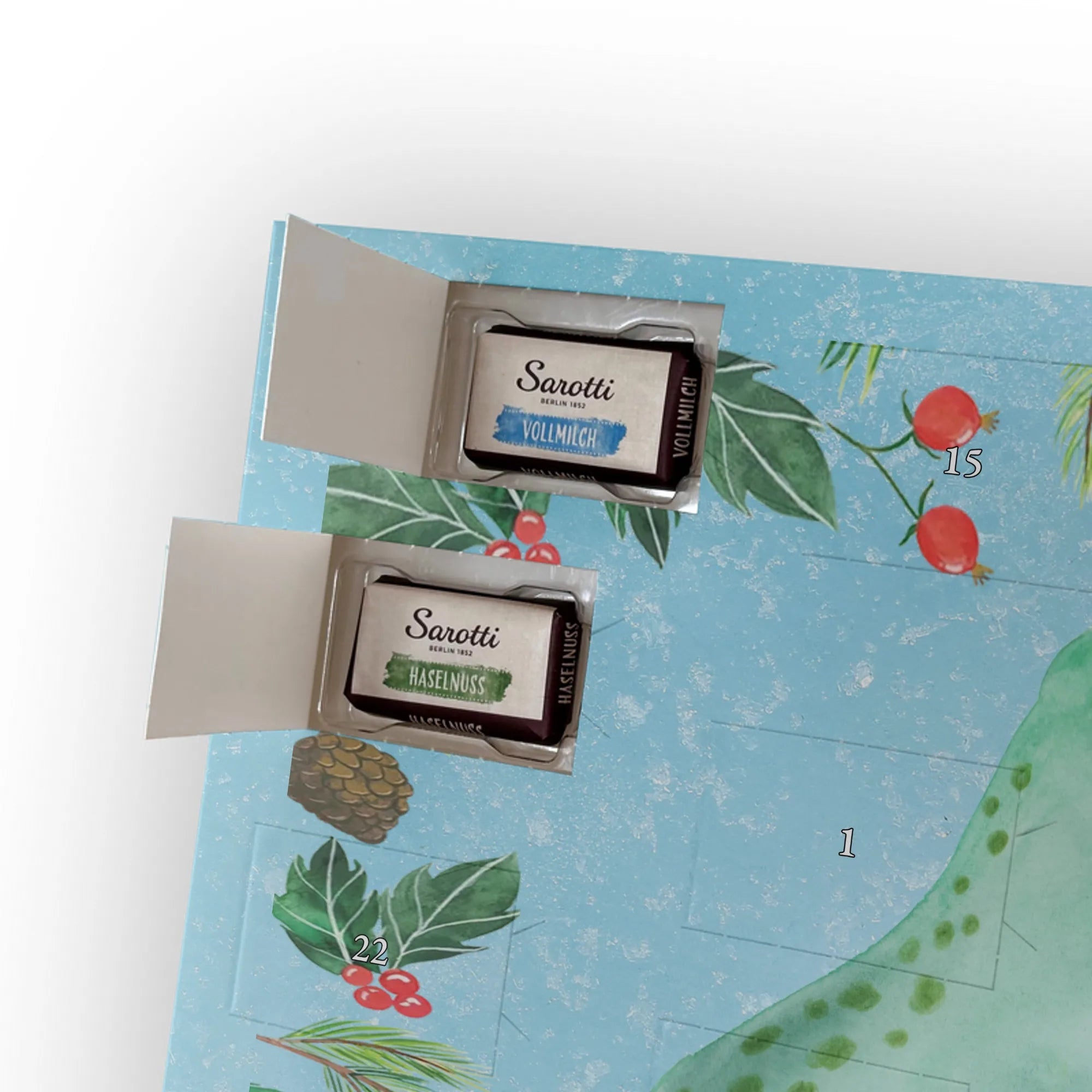 🐼 Schoko-Adventskalender: Liebevolles Design, seidenmatt, brillanter Druck – ein Hingucker.