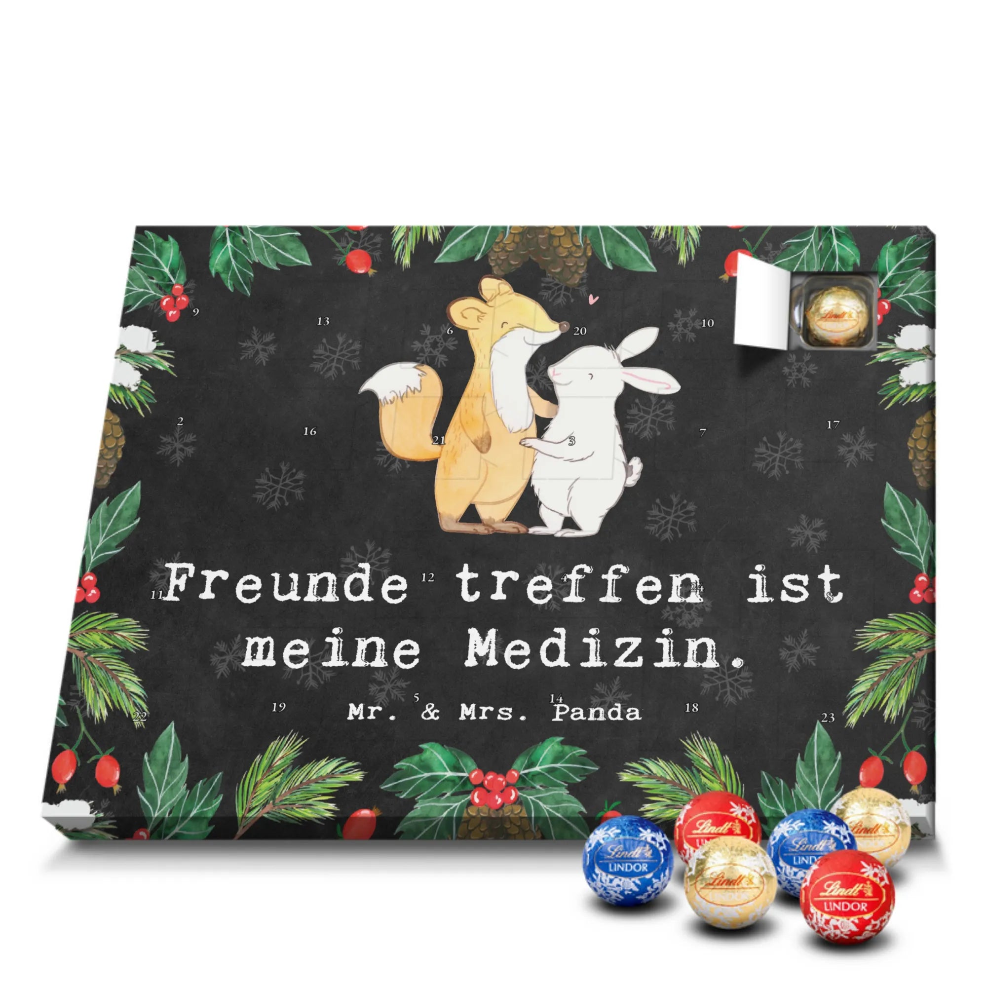 🐼 Schoko Adventskalender mit Lindt Lindor, 24 Kugeln, seidenmatter Druck, nicht personalisierbar.