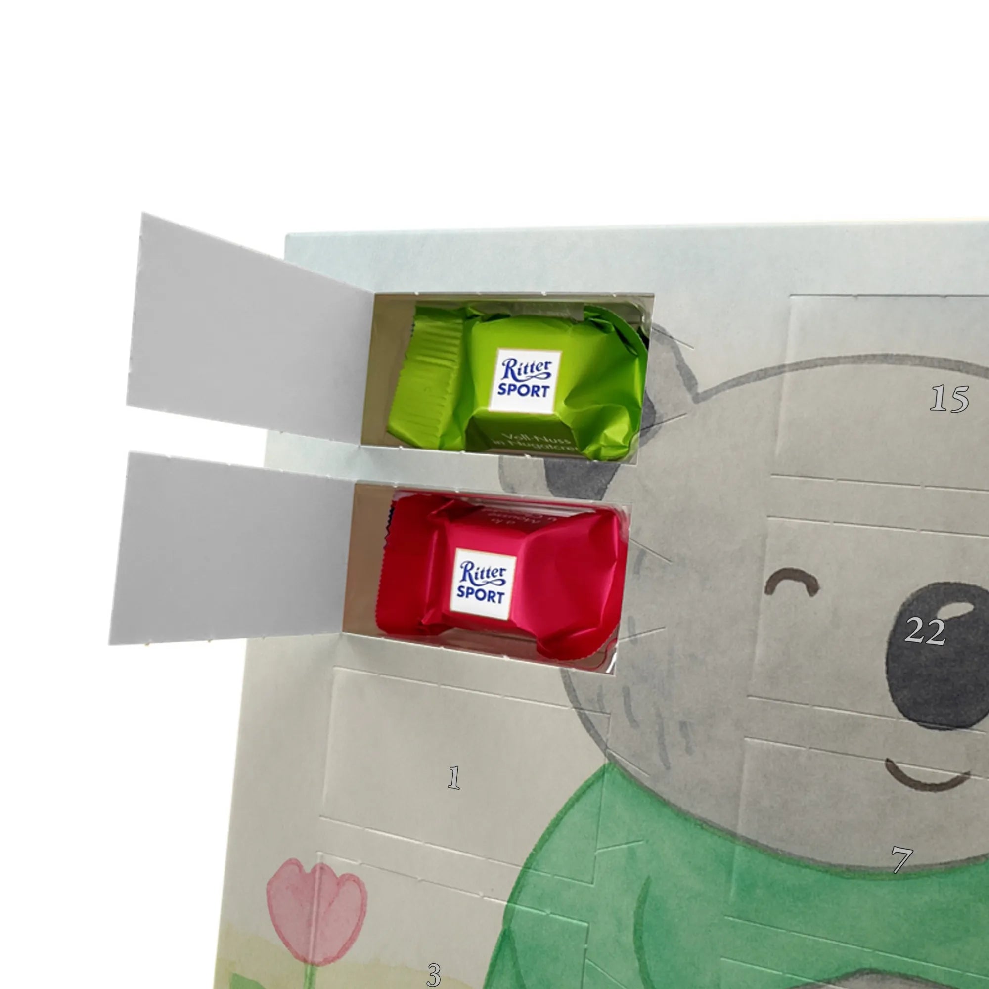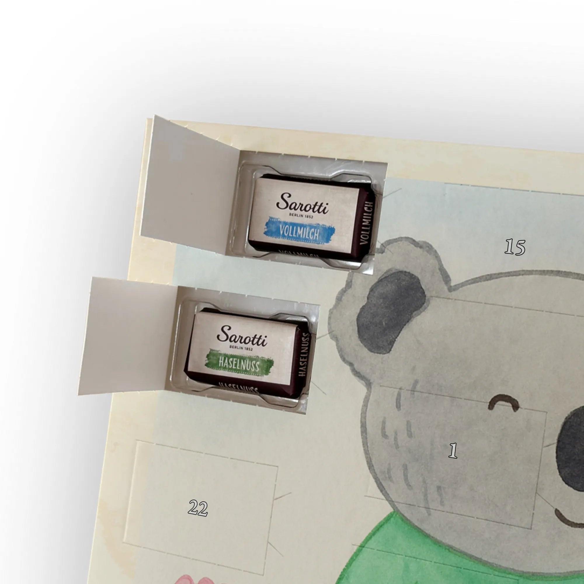 🐼 Schokoladen Adventskalender mit liebevollen Sprüchen und seidenmatter Lackierung.