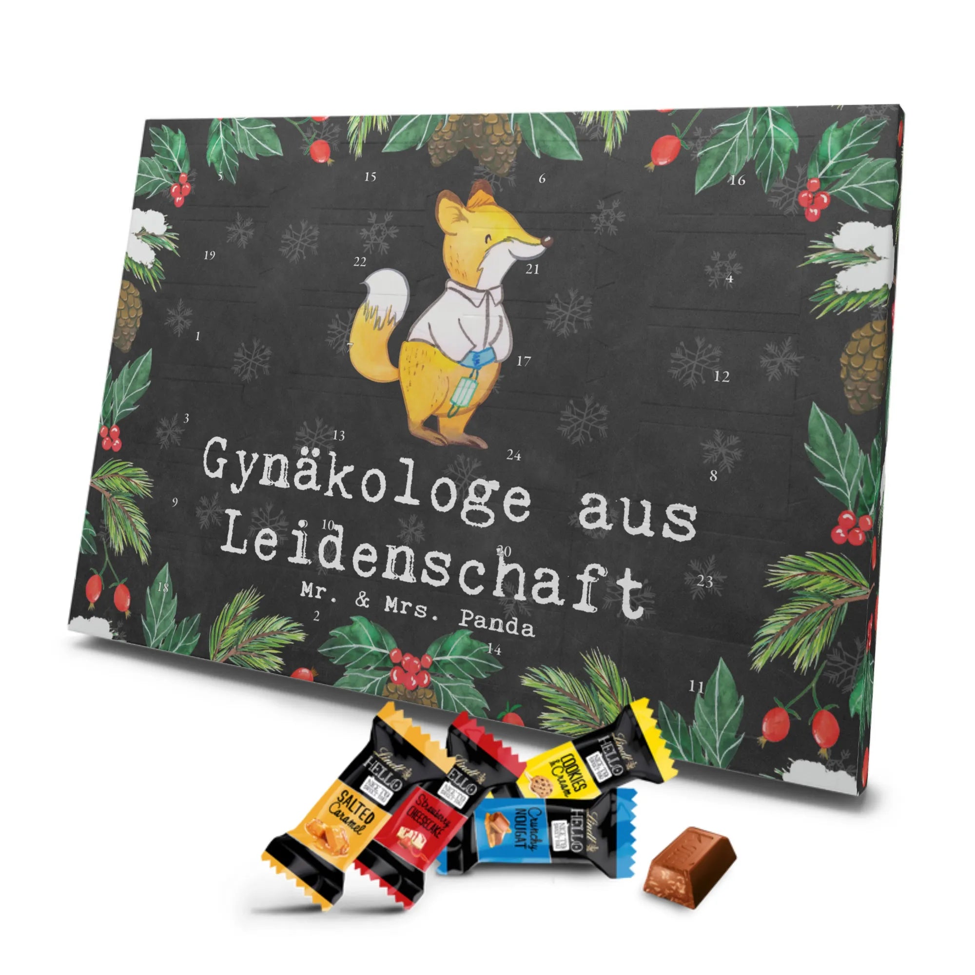 Wunderschöner Schoko Adventskalender von Mr. & Mrs. Panda – perfekt, wenn du dir oder deinen Liebsten die Adventszeit mit süßen Überraschungen versüßen willst. Unser liebevoll gestalteter Schokoladen Adventskalender ist bedruckt mit bezaubernden Motiven und frechen Sprüchen von Mr. & Mrs. Panda und sorgt jeden Tag für ein Lächeln. Der Kalender ist nicht personalisierbar, dafür aber in brillanter Druckqualität mit seidenmatter Oberflächenveredelung gefertigt. Auch die Seitenflächen sind vollständig bedruckt, was dem Design noch mehr Tiefe verleiht. Maße: 325 mm x 225 mm x 27 mm. Besonders praktisch: Der Kalender kann aufgehängt oder aufgestellt werden – so findest du immer den idealen Platz bei dir zu Hause. Gefüllt mit Lindt Hello Schokolade: 24 einzeln verpackte Schokoladen Mini Sticks in vier verschiedenen Sorten – Karamell-Schokoladenkuchen, Kekse, Knuspriger Nougat und Erdbeer-Cheesecake. Zutaten und Allergene findest du auf der Verpackung; wichtige Hinweise: enthält Milcheiweiß, Milchzucker, Soja, Weizen und Haselnüsse, kann Mandeln und andere Schalenfrüchte enthalten. Dieser Adventskalender ist eine liebevolle Geschenkidee für Freunde, Familie und alle Schoko-Fans, die jeden Tag bis Weihnachten mit feinem Schoko-Genuss feiern möchten.
