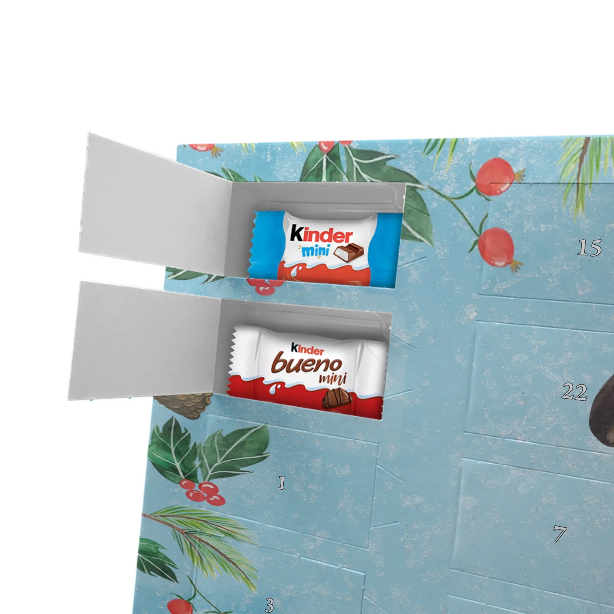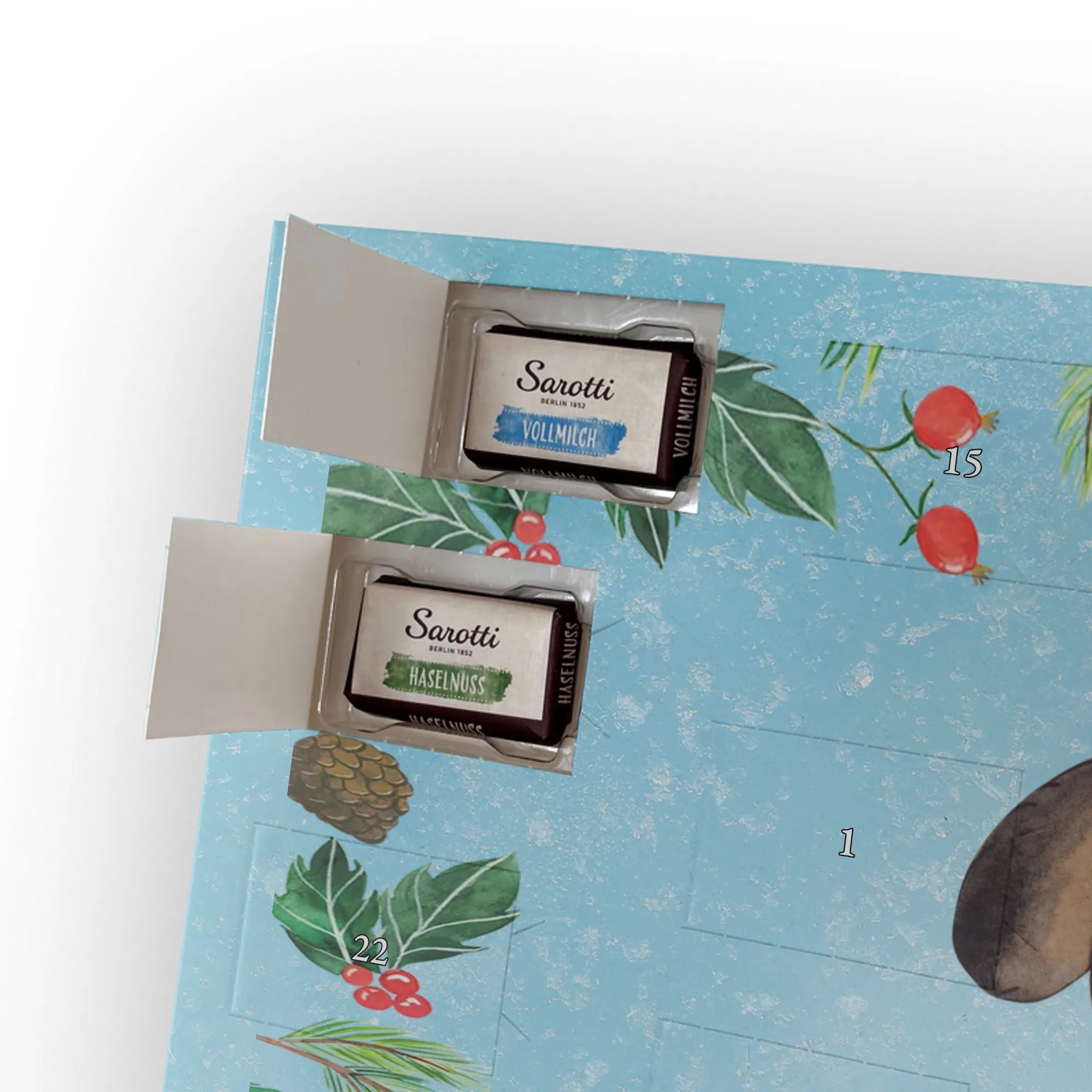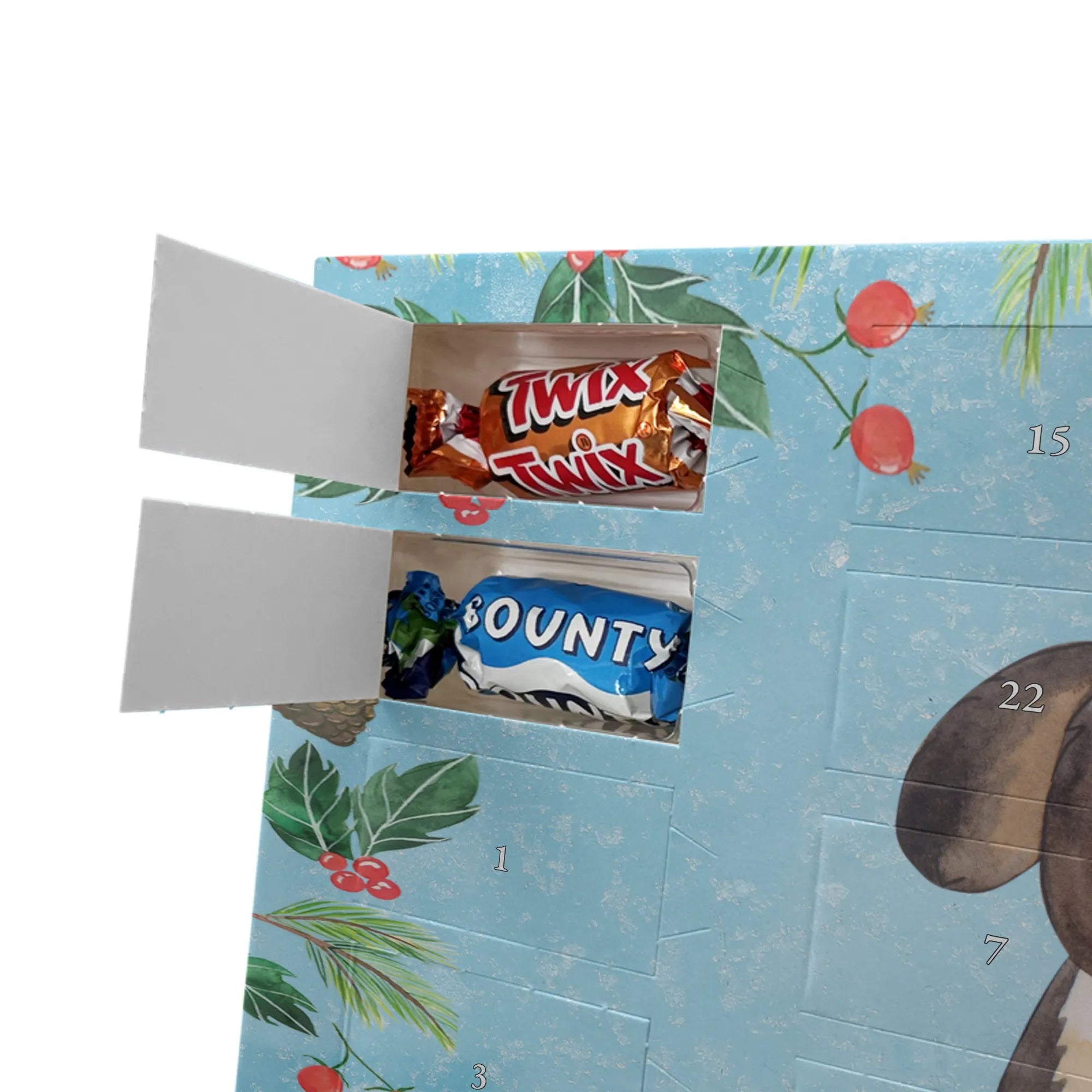 🐼 Schoko-Adventskalender: Liebevolles Design, seidenmatt, brillanter Druck – ein Hingucker.