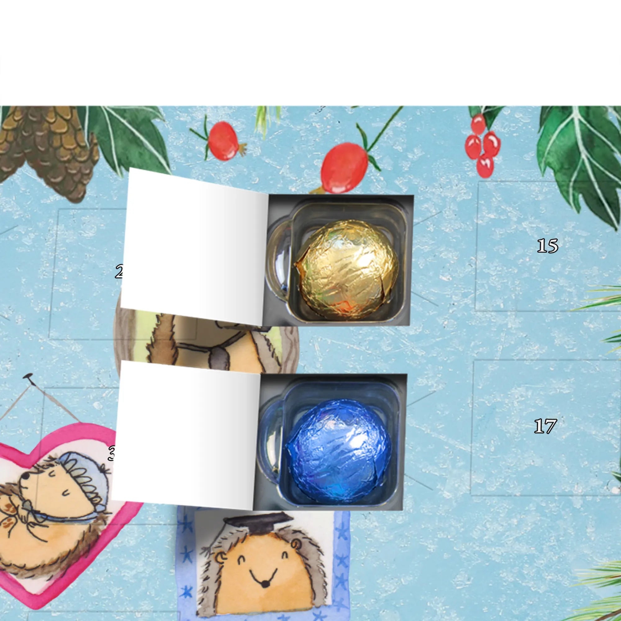 Wunderschöner Adventskalender mit Schokolade von Mr. & Mrs. Panda – für alle, die Advent und Design lieben. Dieser Adventskalender mit Schokolade ist liebevoll bedruckt mit wunderschönen Motiven & Sprüchen von Mr. & Mrs. Panda und ist nicht personalisierbar, aber mit viel Liebe zum Detail gefertigt. Brillante Druckqualität mit seidenmatter Oberflächenveredelung sorgt für einen edlen Look, und die bedruckten Seitenflächen geben dem Kalender eine besondere Optik. Maße: 233 mm x 178 mm x 24 mm. Dank seiner stabilen Verarbeitung kannst du ihn aufstellen oder ganz einfach aufhängen – Besonderheit: kann aufgehängt oder aufgestellt werden. Gefüllt mit MARKENNAMEN Schokolade und leckeren Schokoladenkugeln, bringt er jeden Tag ein kleines Glückserlebnis. Wichtige Hinweise: (Kann Spuren von Haselnüssen, Mandeln, Gluten und Soja enthalten!), bitte kühl und trocken lagern. Ob als Geschenk, Mitbringsel oder Adventsdeko – dieser Kalender zaubert ein Lächeln und sorgt für gemütliche Vorfreude. Viel Freude beim Entdecken der süßen Überraschungen wünscht dir Mr. & Mrs. Panda!