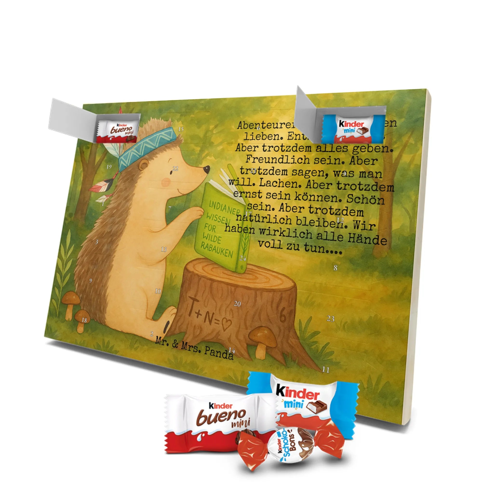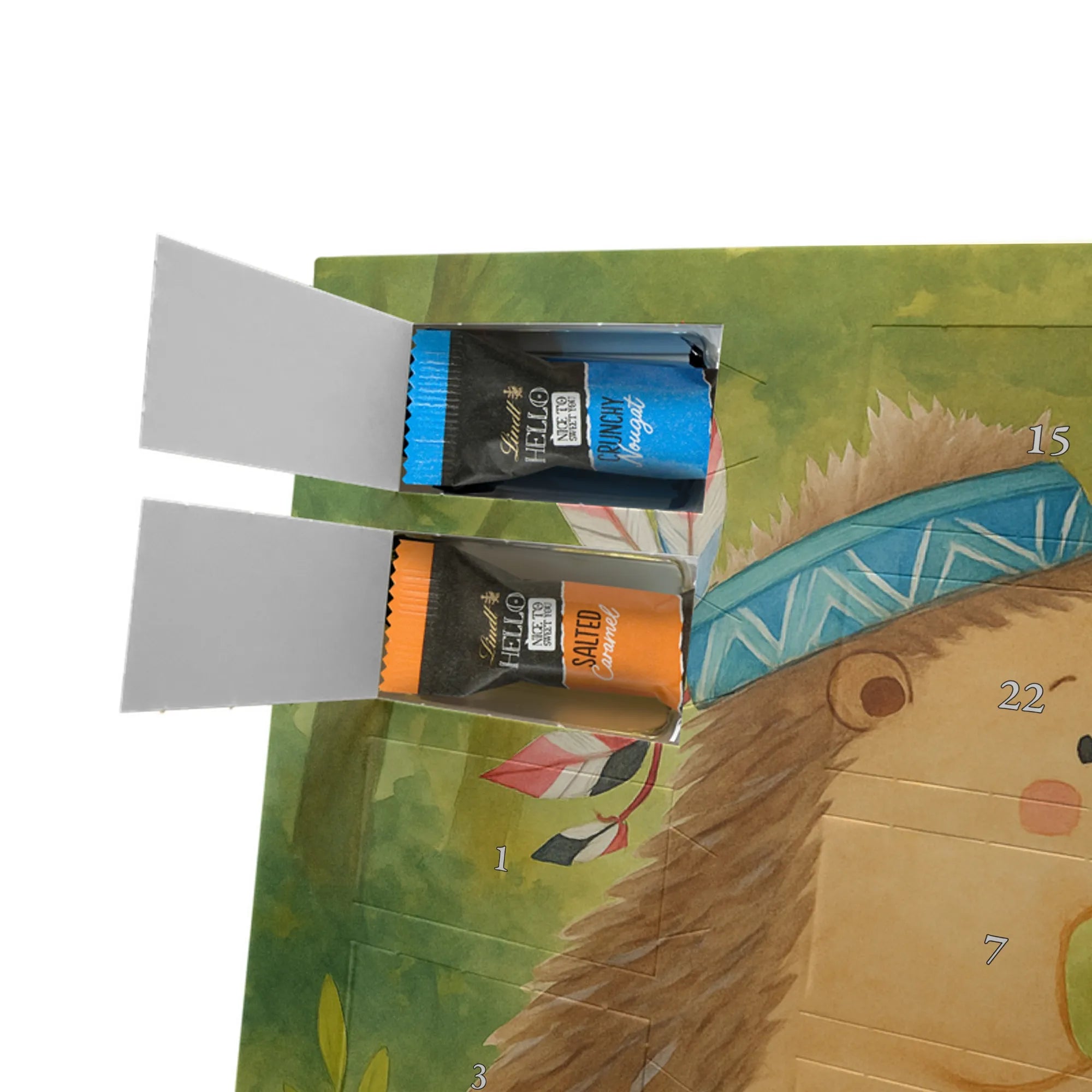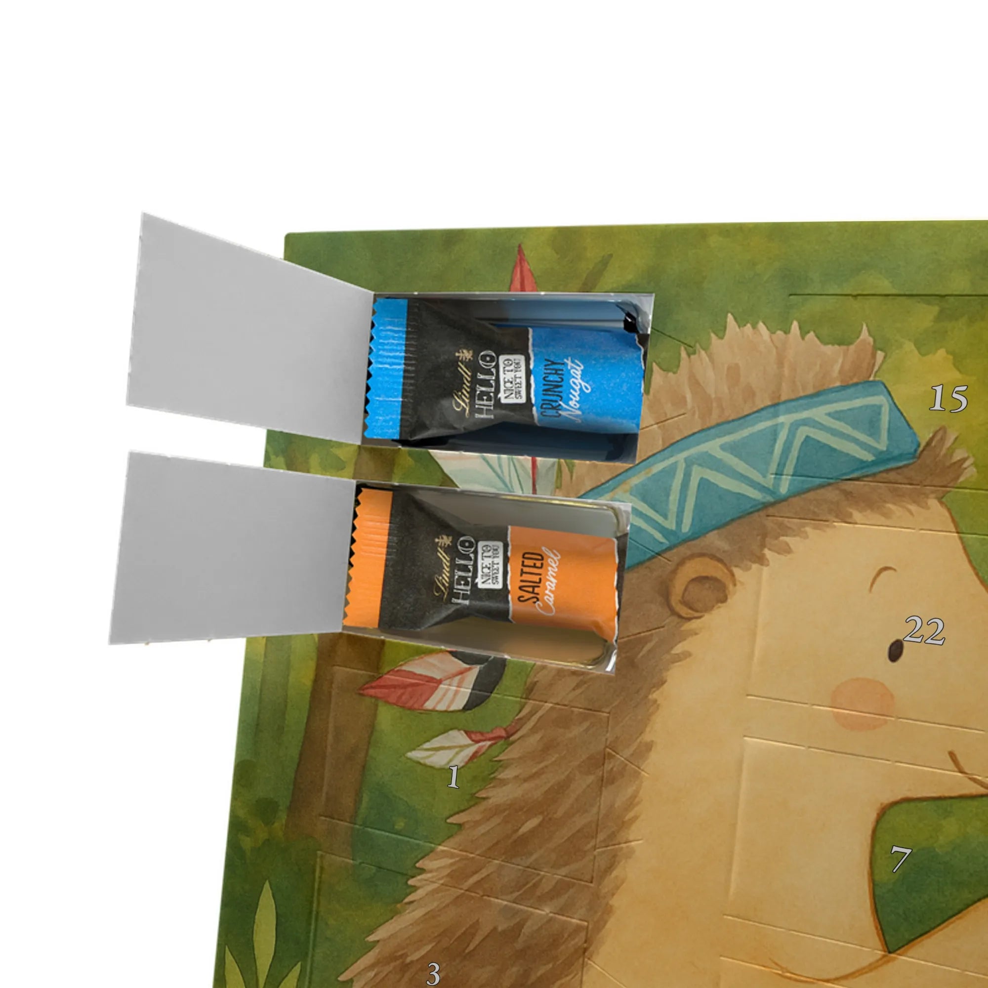 Adventskalender Igel Federschmuck Design - Lindt HELLO - mit Spruch