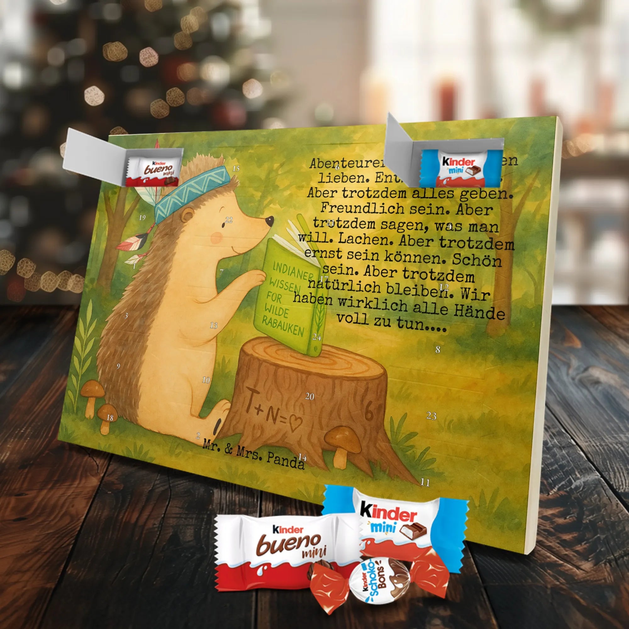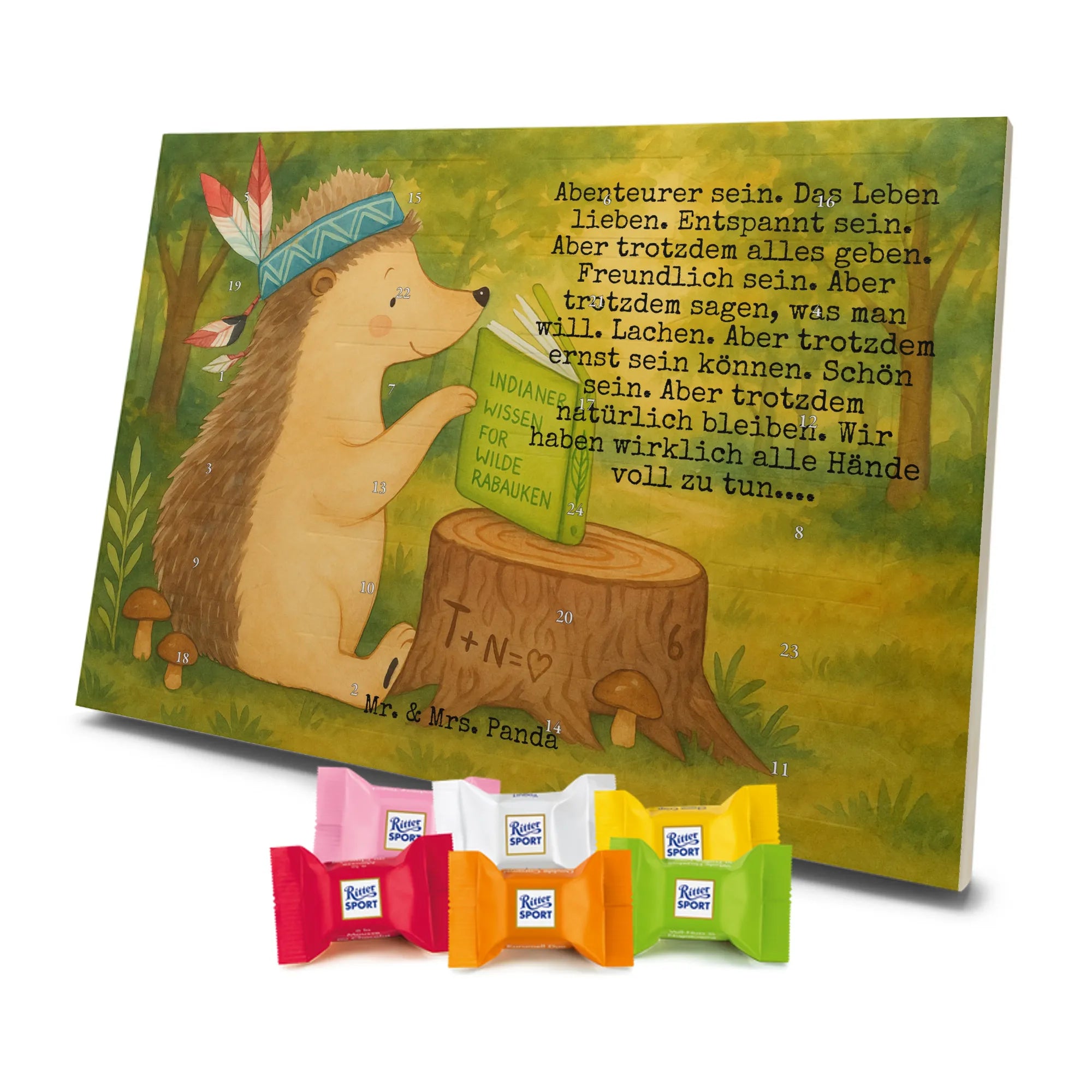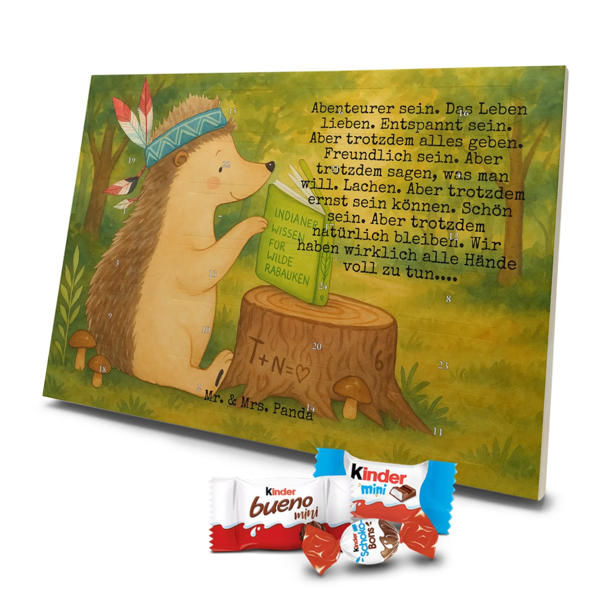 Adventskalender Igel Federschmuck Design - Lindt HELLO - mit Spruch