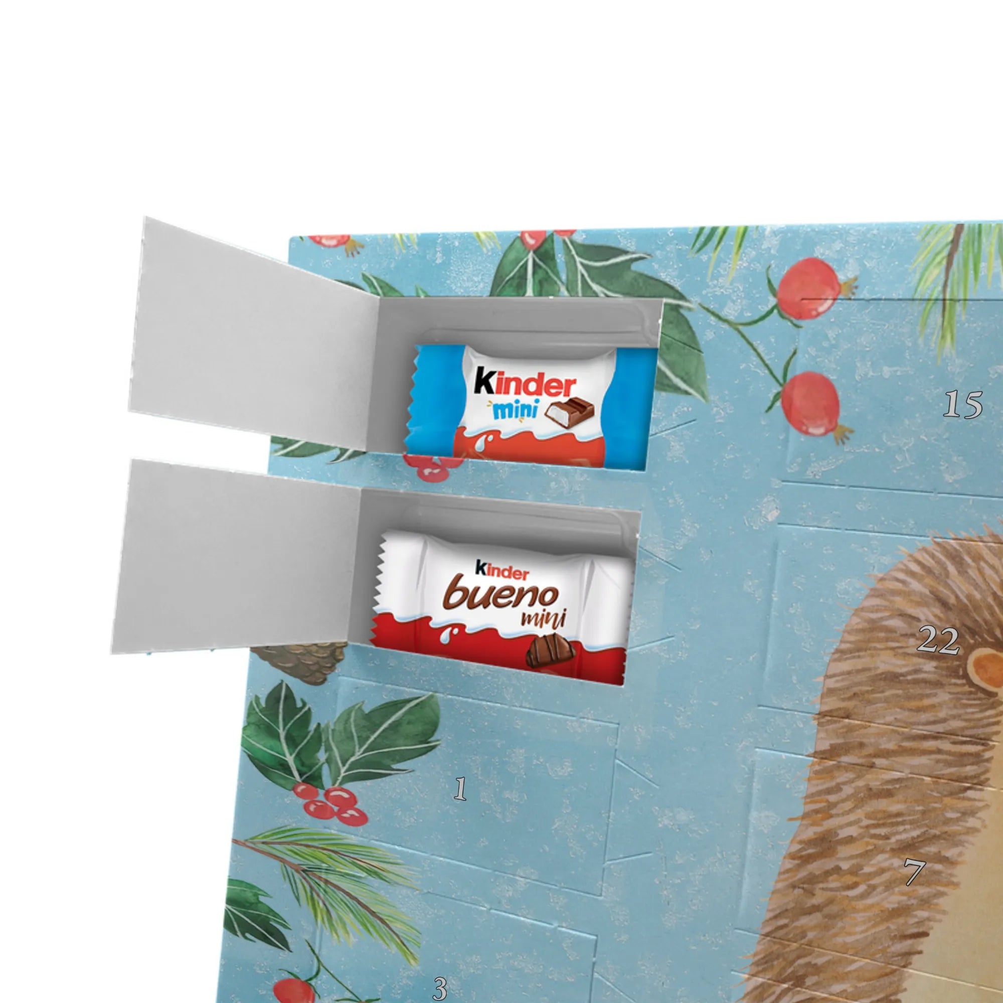 Schoko Adventskalender von Mr. & Mrs. Panda – die charmante Art, sich oder anderen die Adventszeit zu versüßen. Der Kalender ist bedruckt mit wunderschönen Motiven & Sprüchen von Mr. & Mrs. Panda und nicht personalisierbar. Wir legen Wert auf brillante Druckqualität mit seidenmatter Oberflächenveredelung sowie auf bedruckte Seitenflächen für ein stimmiges Gesamtbild. Maße: 355 mm x 245 mm x 11 mm. Besonders praktisch: kann aufgehängt oder aufgestellt werden und passt so in jede Wohnung. Gefüllt mit Markenname Schokolade: Adventskalender gefüllt mit kinder® Schokolade. Inhalt: kinder® Schoko-Bons, kinder® Bueno mini und kinder® Schokolade mini. Die 24 Türchen sind mit kleinen Schoko-Überraschungen bestückt und schaffen jeden Tag Vorfreude. Ob als Geschenk für Kinder, Partner oder als nette Aufmerksamkeit für Kolleginnen und Kollegen – dieser Kalender macht Freude. Robust, schön gestaltet und sofort einsatzbereit für die süßeste Zeit des Jahres!