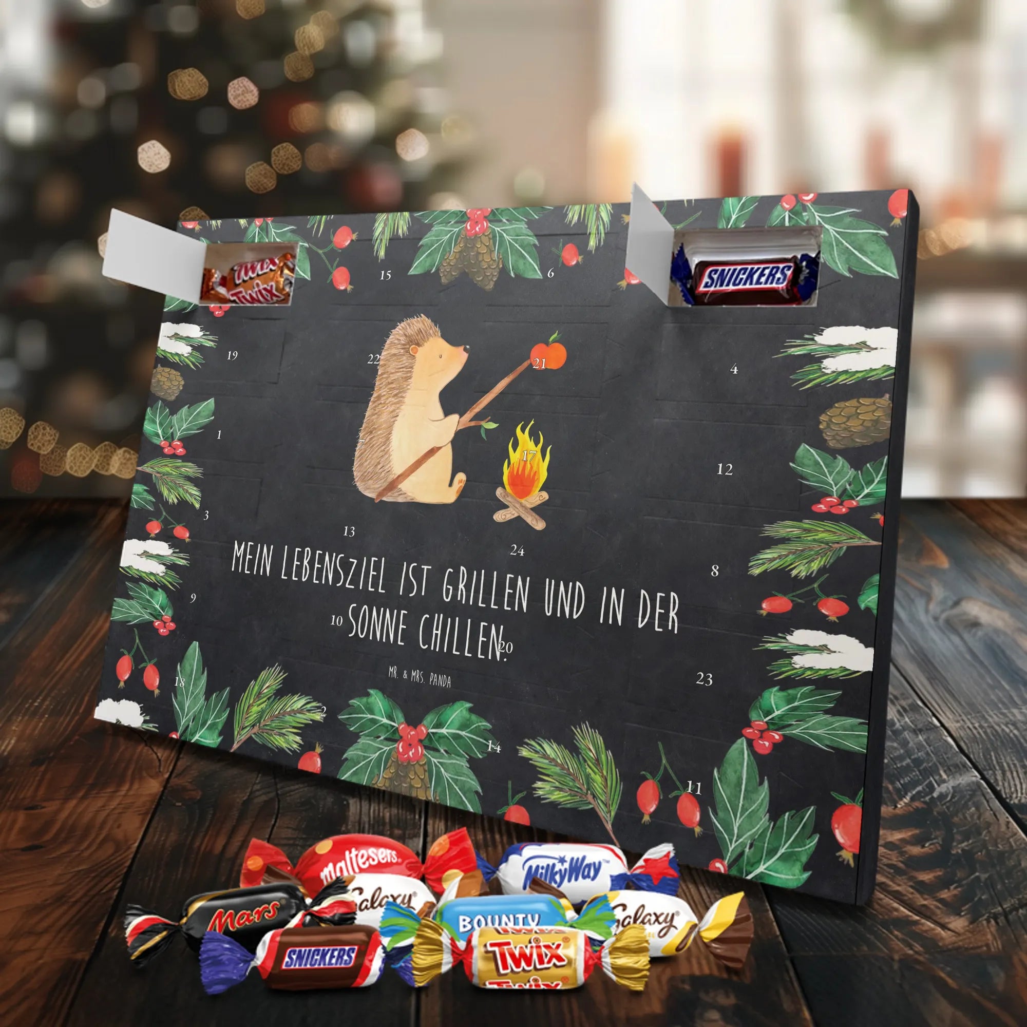 Jeden Adventstag ein kleines Stückchen Glück: Der Schoko Adventskalender „Igel grillt“ aus der Mr. & Mrs. Panda Small World Kollektion vereint süße Schokolade mit einem liebevollen Motiv und einem frechen Spruch. Der niedliche Igel sitzt zufrieden am Lagerfeuer und grillt einen Apfel – begleitet von dem Spruch „Mein Lebensziel ist grillen und in der Sonne chillen.“ Dieser Schokoladen Adventskalender zaubert gute Laune und ist ein perfektes Geschenk für alle, die Tiere und lustige Sprüche mögen.