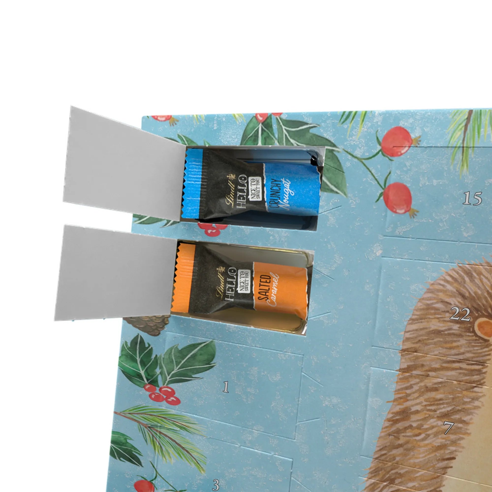 🐼 LINDT HELLO ADVENTSKALENDER: Liebevoll bedruckt, seidenmatte Veredelung, 325×225×27 mm.