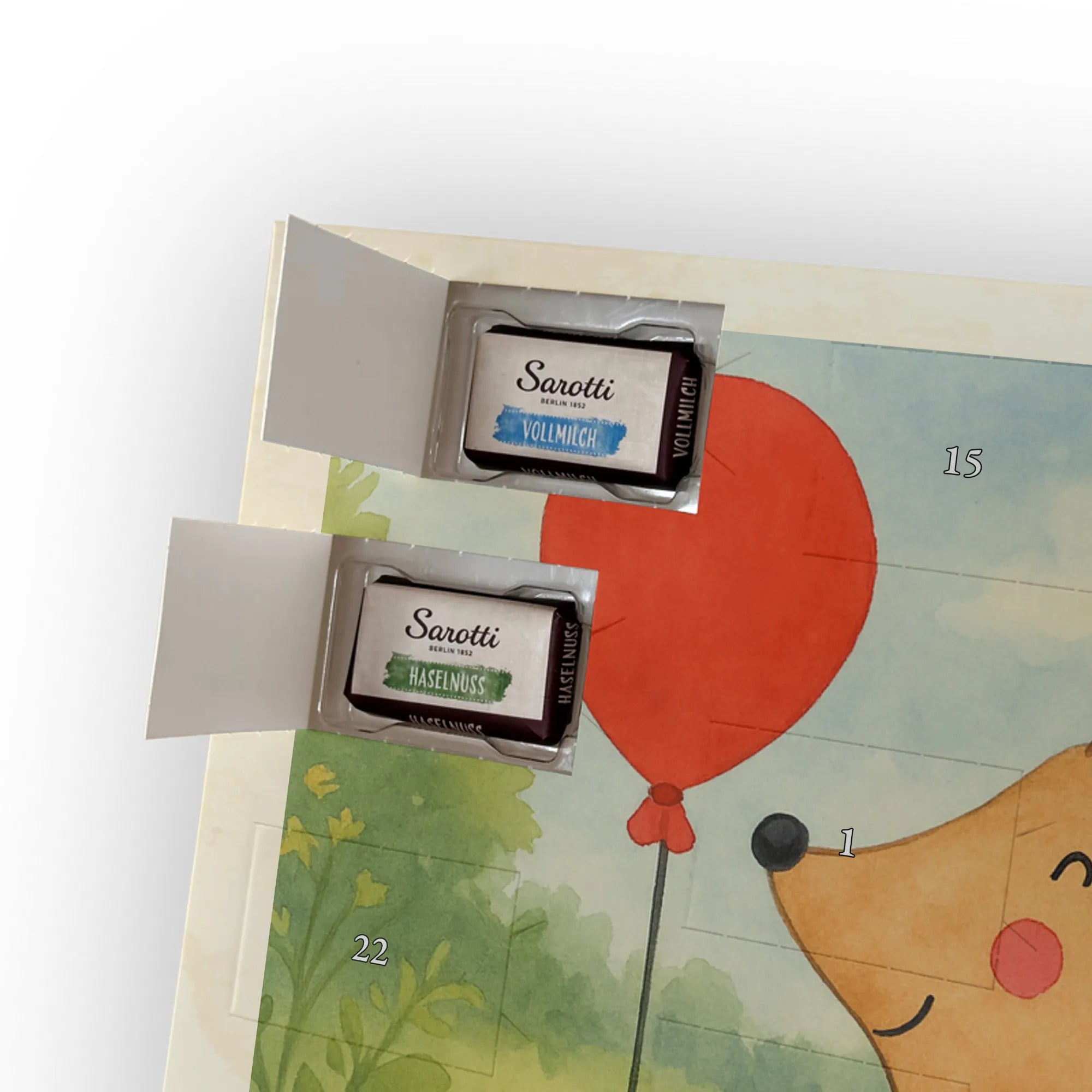 🐼 SCHOKOLADEN-ADVENTSKALENDER: Edler, seidenmatter Druck mit liebevollen Illustrationen.