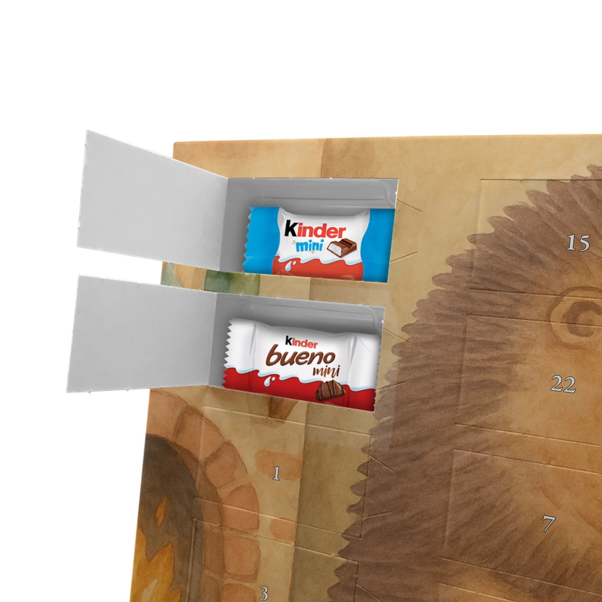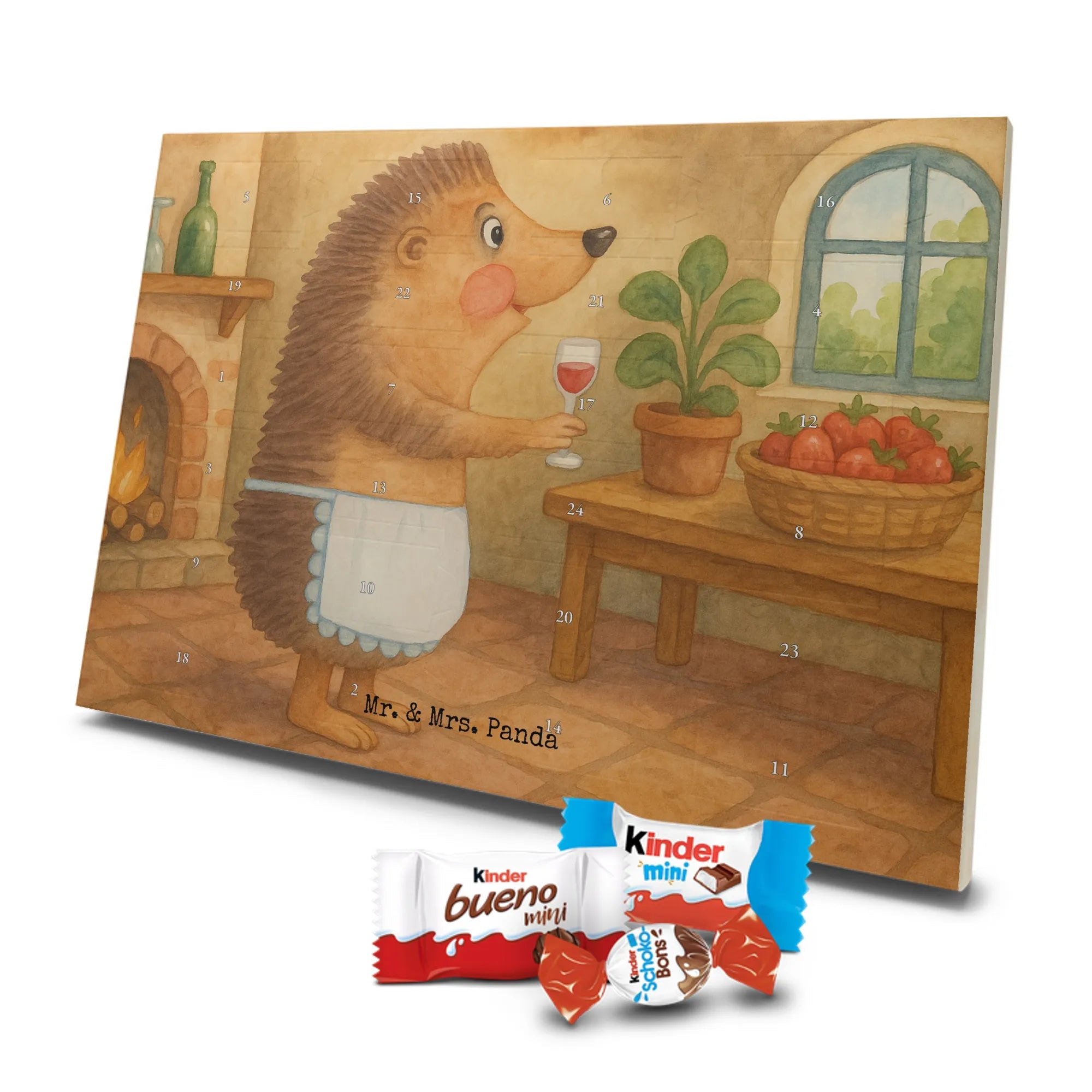 Adventskalender mit Schokolade – liebevoll gestaltet von Mr. & Mrs. Panda. Dieser niedliche Kalender ist bedruckt mit wunderschönen Motiven & Sprüchen von Mr. & Mrs. Panda und trotzdem nicht personalisierbar. Du bekommst brillante Druckqualität mit seidenmatter Oberflächenveredelung sowie bedruckte Seitenflächen, die dem Kalender ein hochwertiges Finish verleihen. Maße: 355 mm x 245 mm x 11 mm. Ein tolles Extra: kann aufgehängt oder aufgestellt werden, sodass du ihn flexibel platzieren kannst. Gefüllt mit Markenname Schokolade: Adventskalender gefüllt mit kinder® Schokolade. Inhalt: kinder® Schoko-Bons, kinder® Bueno mini und kinder® Schokolade mini. Die 24 Türchen sind liebevoll befüllt und sorgen jeden Tag für ein Lächeln – ideal für Kinder, Paare oder als kleines Geschenk für Freunde. Robust und dekorativ zugleich, bringt dieser Adventskalender süße Vorfreude in dein Zuhause. Verschenke oder genieße eine adventliche Zeit voller kleiner, schokoladiger Überraschungen!