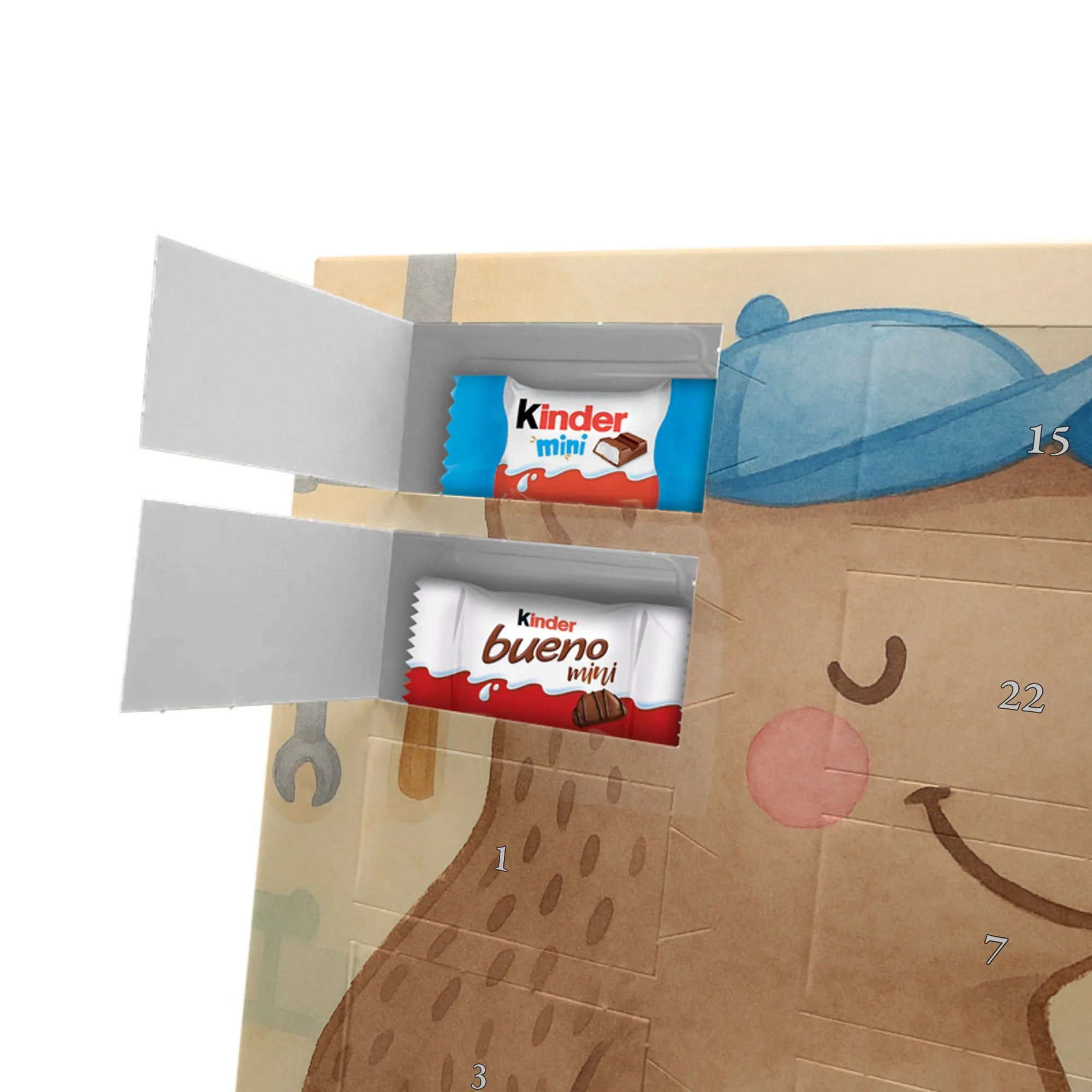 Entdecke unseren liebevoll gestalteten Schoko-Adventskalender von Mr. & Mrs. Panda – eine zauberhafte Idee, um die Tage bis Weihnachten zu versüßen. Der Kalender ist bedruckt mit wunderschönen Motiven & Sprüchen von Mr. & Mrs. Panda und ist nicht personalisierbar. Wir setzen auf brillante Druckqualität mit seidenmatter Oberflächenveredelung und bedruckte Seitenflächen für ein rundum schönes Erscheinungsbild. Maße: 355 mm x 245 mm x 11 mm. Die clevere Bauweise erlaubt es, den Kalender entweder aufzuhängen oder freistehend aufzustellen – so bist du flexibel bei der Dekoration. Gefüllt mit Markenname Schokolade: Adventskalender gefüllt mit kinder® Schokolade. Inhalt: kinder® Schoko-Bons, kinder® Bueno mini und kinder® Schokolade mini. Jeder Tag bringt eine kleine Freude und eignet sich perfekt als Geschenk oder als dekoratives Highlight in deinem Zuhause. Die stabile Verarbeitung sorgt dafür, dass der Kalender die ganze Adventszeit über Freude bereitet. Hol dir diesen Schoko-Adventskalender und lade die Vorweihnachtszeit mit süßen Überraschungen auf!