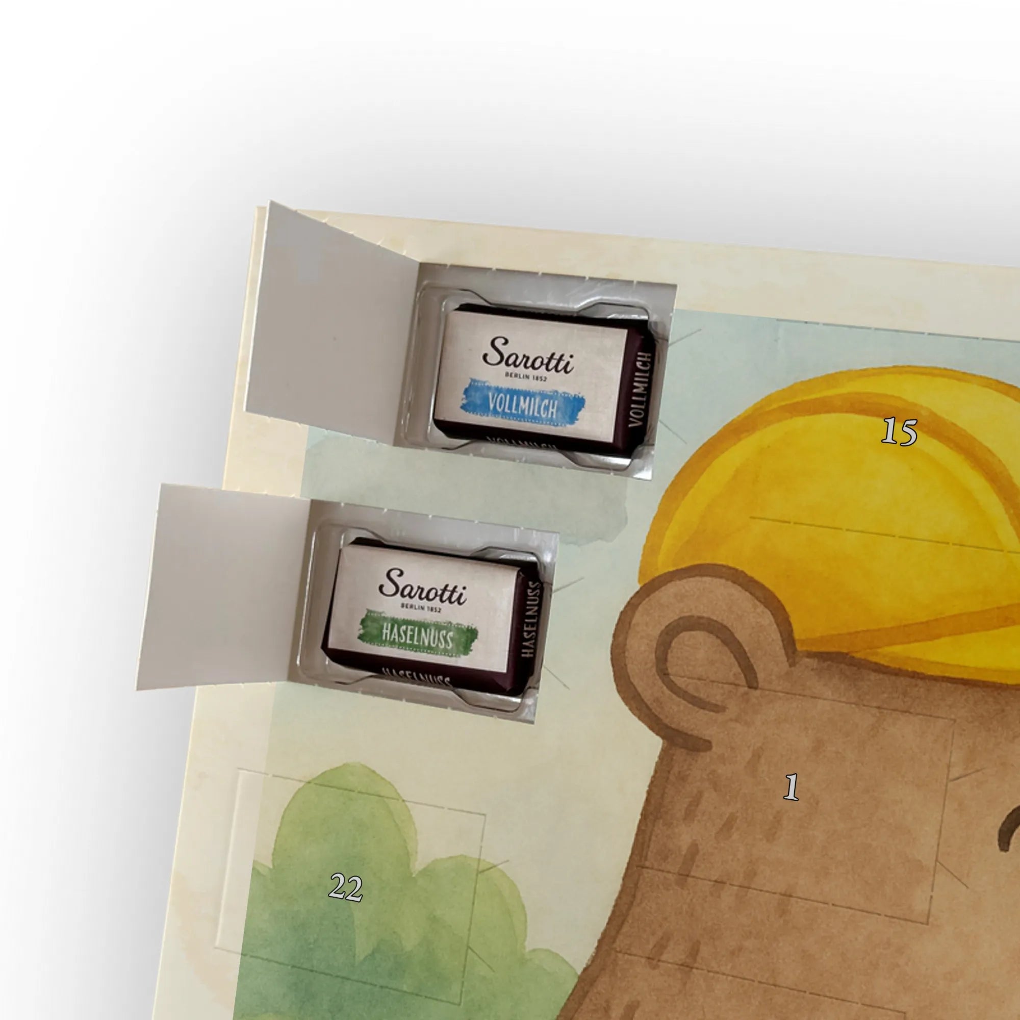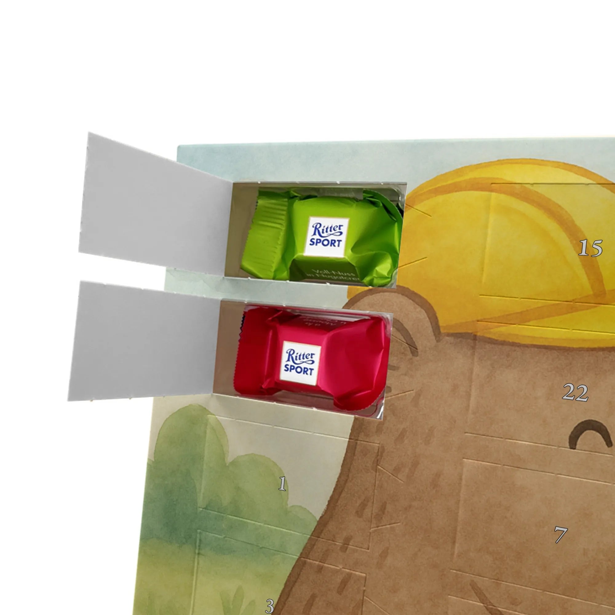 🐼 Schoko-Adventskalender: Liebevolles Design, seidenmatt, brillanter Druck – ein Hingucker.