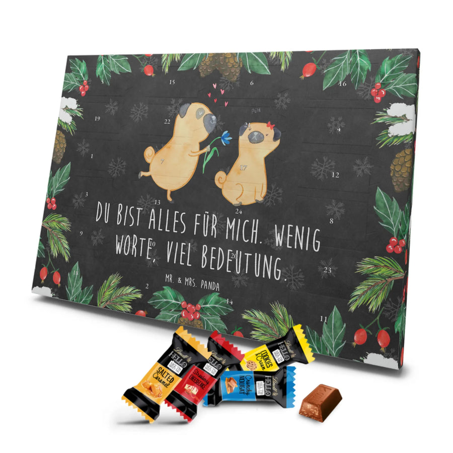 schokolade adventskalender Mops Verliebt - Lindt HELLO - mit Spruch - Kreidetafel