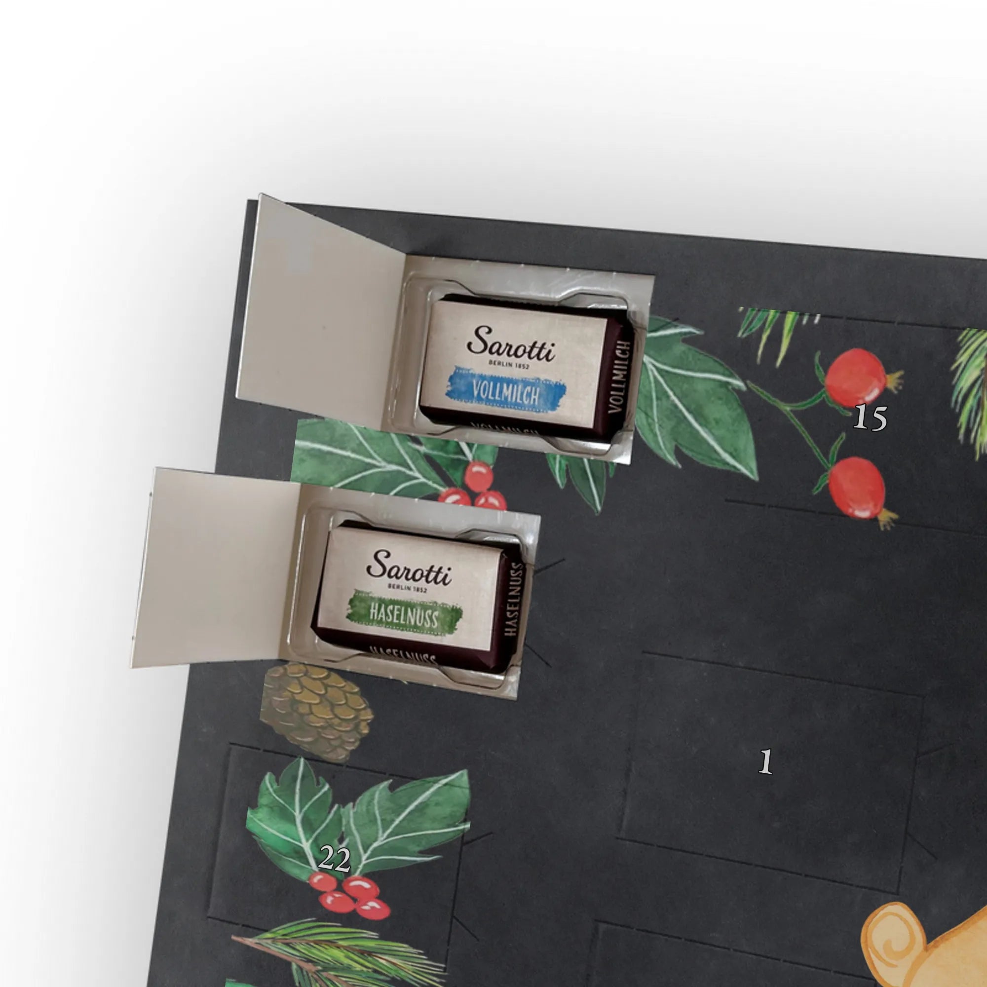 🐼 SCHOKOLADEN-ADVENTSKALENDER: Edler, seidenmatter Druck mit liebevollen Illustrationen.