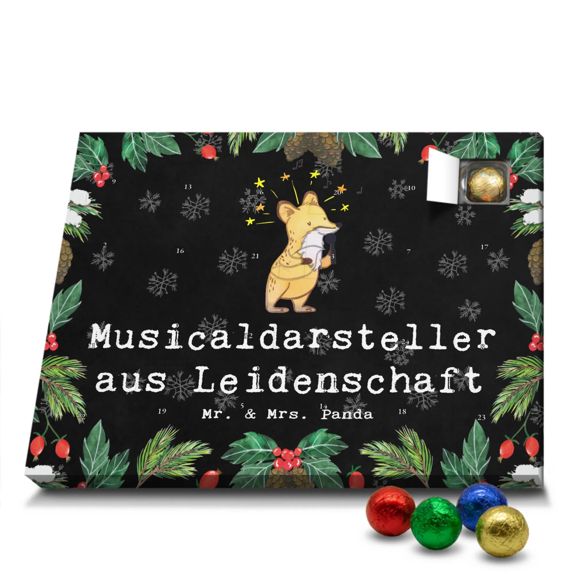 🐼 ADVENTSKALENDER SCHOKOLADE: Fröhlich bedruckt, nicht personalisierbar, gefüllt mit Markennamen Schokolade.