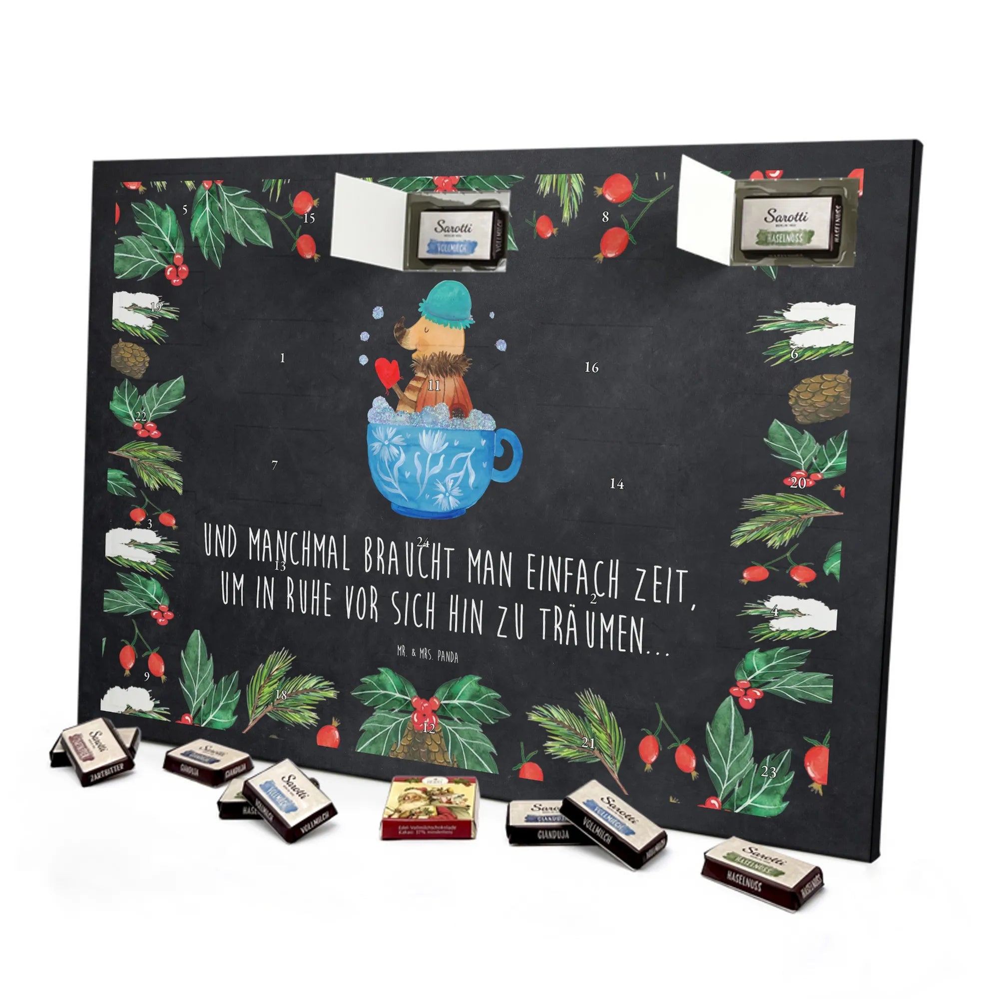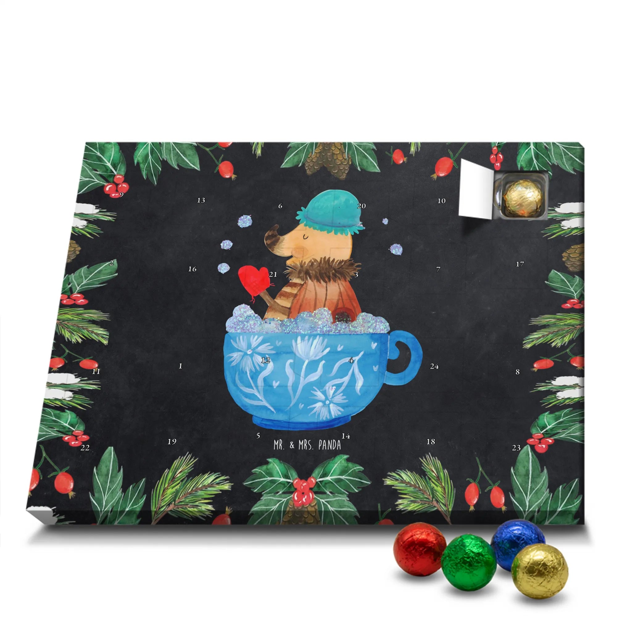 Mach die Adventszeit süßer: Entdecke unseren bedruckten Schokoladen Adventskalender von Mr. & Mrs. Panda und verschenke täglich Freude!