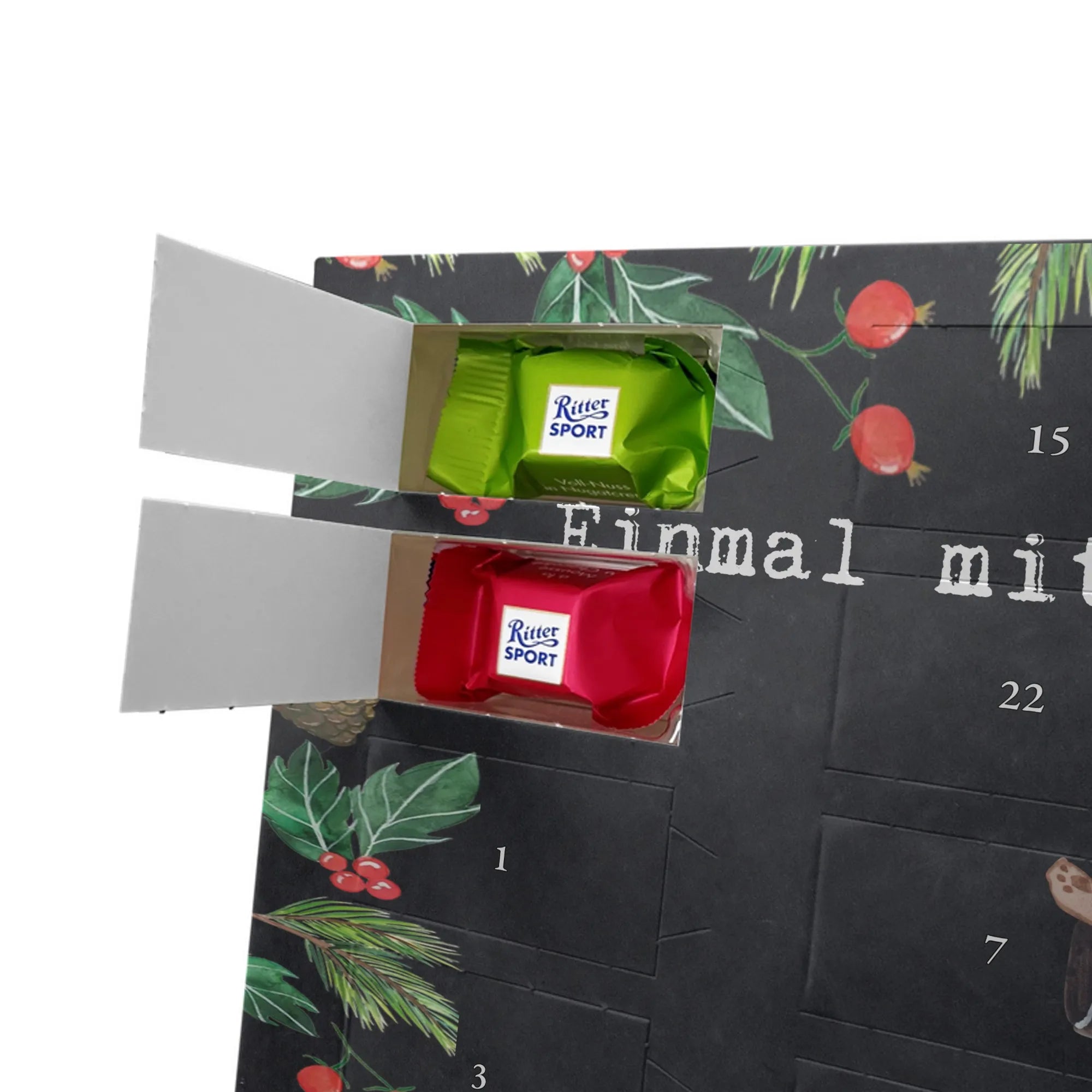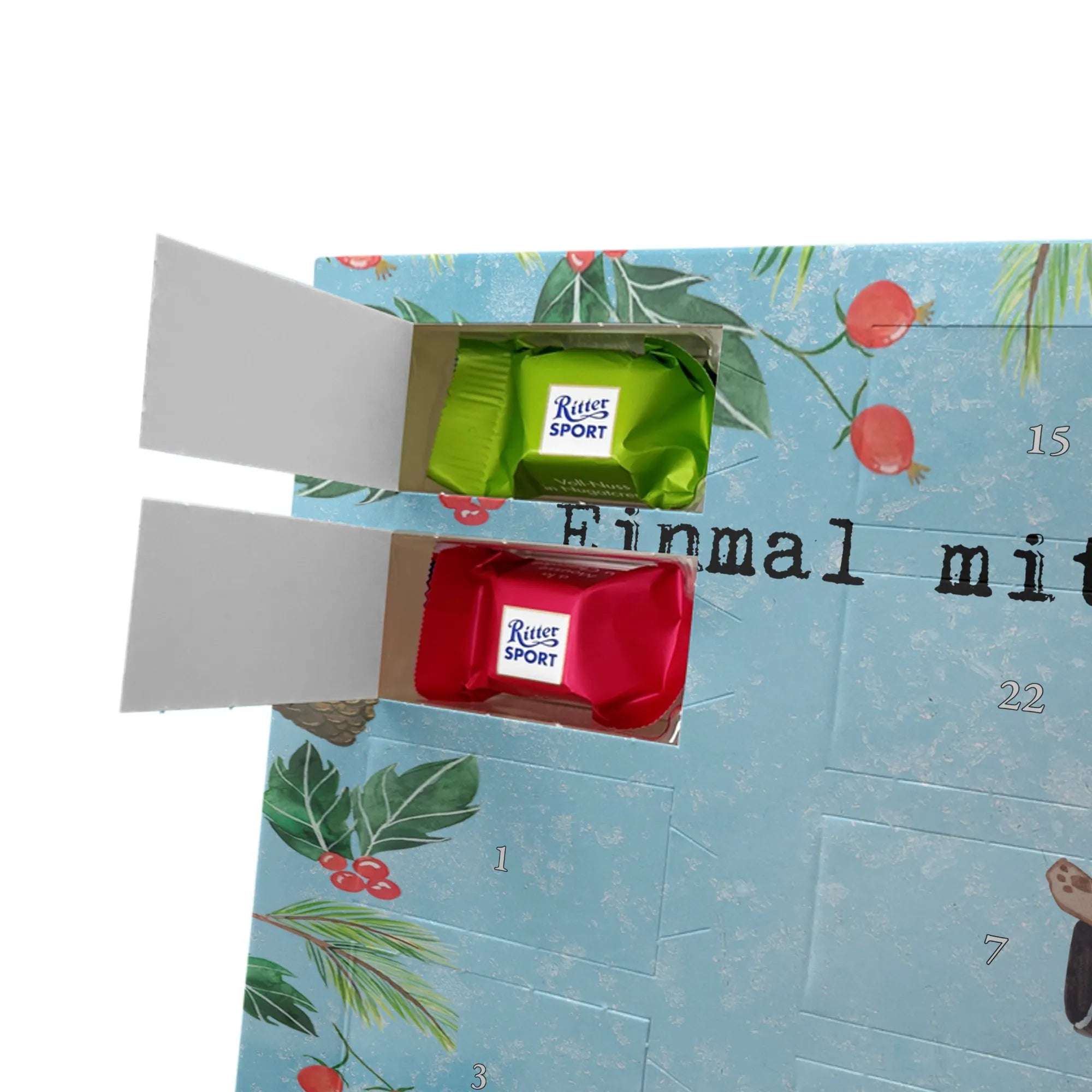 Unser zauberhafter Schoko Adventskalender von Mr. & Mrs. Panda bringt dir die Vorweihnachtszeit mit Liebe und Charme. Der Kalender ist bedruckt mit wunderschönen Motiven & Sprüchen von Mr. & Mrs. Panda und überrascht dich hinter jedem Türchen. Er ist nicht personalisierbar und kommt in brillanter Druckqualität mit seidenmatter Oberflächenveredelung – so sehen die Illustrationen einfach himmlisch aus. Die Seitenflächen sind ebenfalls bedruckt, sodass sich der Kalender von allen Seiten hübsch präsentiert. Maße: 325 mm x 225 mm x 27 mm. Eine besondere Eigenschaft: Du kannst ihn aufgehängt oder aufgestellt verwenden, je nachdem, wo er bei dir am besten zur Geltung kommt. Gefüllt ist der Kalender mit Ritter Sport Schokowürfeln in leckeren Geschmacksrichtungen: Mousse au Chocolat, Schoko Crisp, Voll-Nuss in Nougatcreme, Karamell Duo, Joghurt und Erdbeer-Joghurt. Bitte beachte: Es handelt sich um einen Kalender gefüllt mit Ritter Sport Schokolade, nicht um einen Kalender der Marke Ritter Sport. Perfekt als Geschenk für Freunde, Familie oder einfach als süße Belohnung für dich selbst – dieser Schoko Adventskalender macht die Adventszeit jeden Tag ein bisschen süßer.