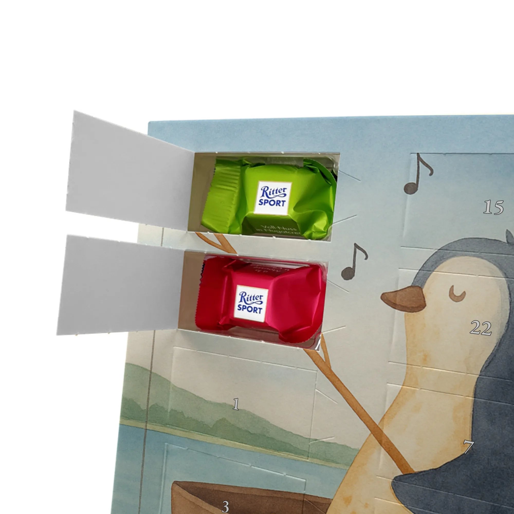 Adventskalender Schokolade von Mr. & Mrs. Panda – eine liebevolle Kombination aus hübschem Design und süßem Inhalt. Der Kalender ist bedruckt mit wunderschönen Motiven & Sprüchen von Mr. & Mrs. Panda und besticht durch brillante Druckqualität mit seidenmatter Oberflächenveredelung. Die Seitenflächen sind ebenfalls bedruckt, wodurch der Kalender rundum ein Hingucker ist. Er ist nicht personalisierbar. Maße: 325 mm x 225 mm x 27 mm. Besonders praktisch: Du kannst ihn sowohl aufgehängt als auch aufgestellt nutzen, je nachdem, wo er bei dir am schönsten wirkt. Gefüllt ist der Kalender mit Ritter Sport Schokowürfeln in verführerischen Sorten – Mousse au Chocolat, Schoko Crisp, Voll-Nuss in Nougatcreme, Karamell Duo, Joghurt und Erdbeer-Joghurt. Wichtiger Hinweis: Es handelt sich um einen Kalender gefüllt mit Ritter Sport Schokolade, nicht um einen Kalender der Marke Ritter Sport. Schenke deinen Liebsten oder dir selbst tägliche Schokoglücksmomente mit diesem charmanten Adventskalender.