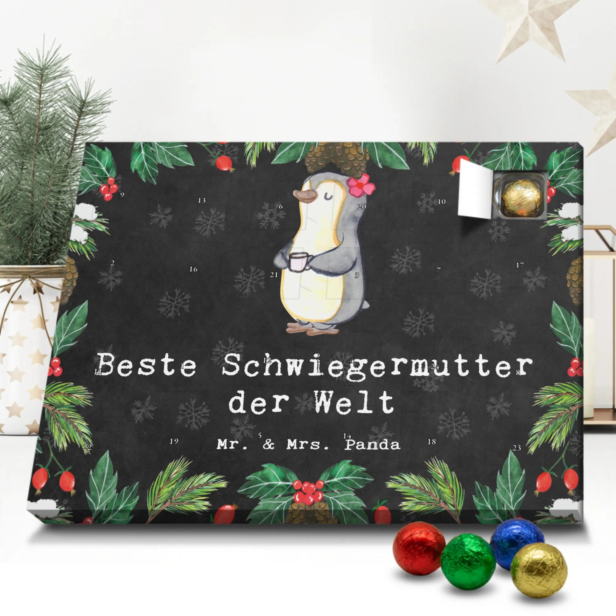Adventskalender Pinguin Beste Schwiegermutter der Welt - Lindt HELLO - Kreidetafel