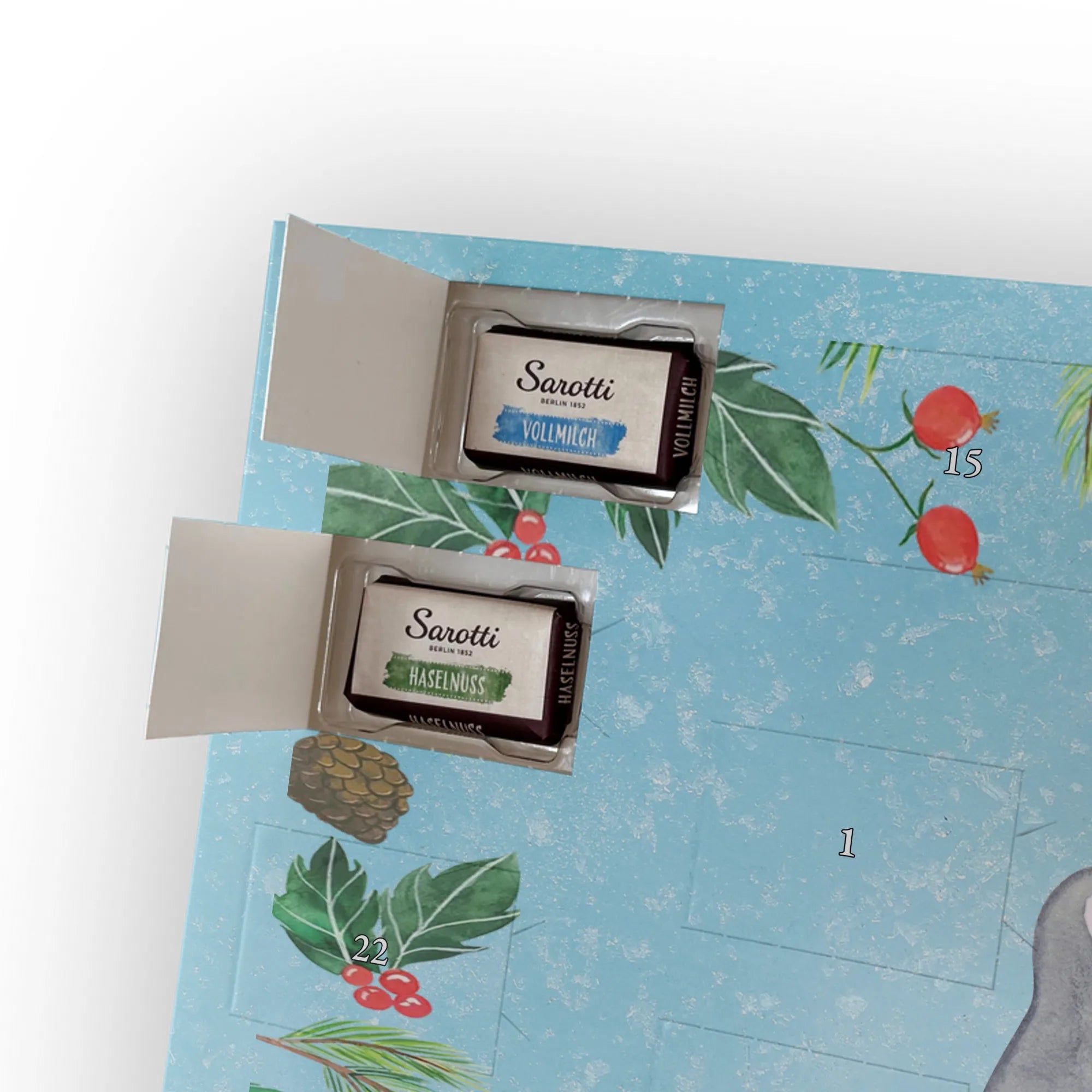 🐼 Schoko-Adventskalender: Liebevolles Design, seidenmatt, brillanter Druck – ein Hingucker.