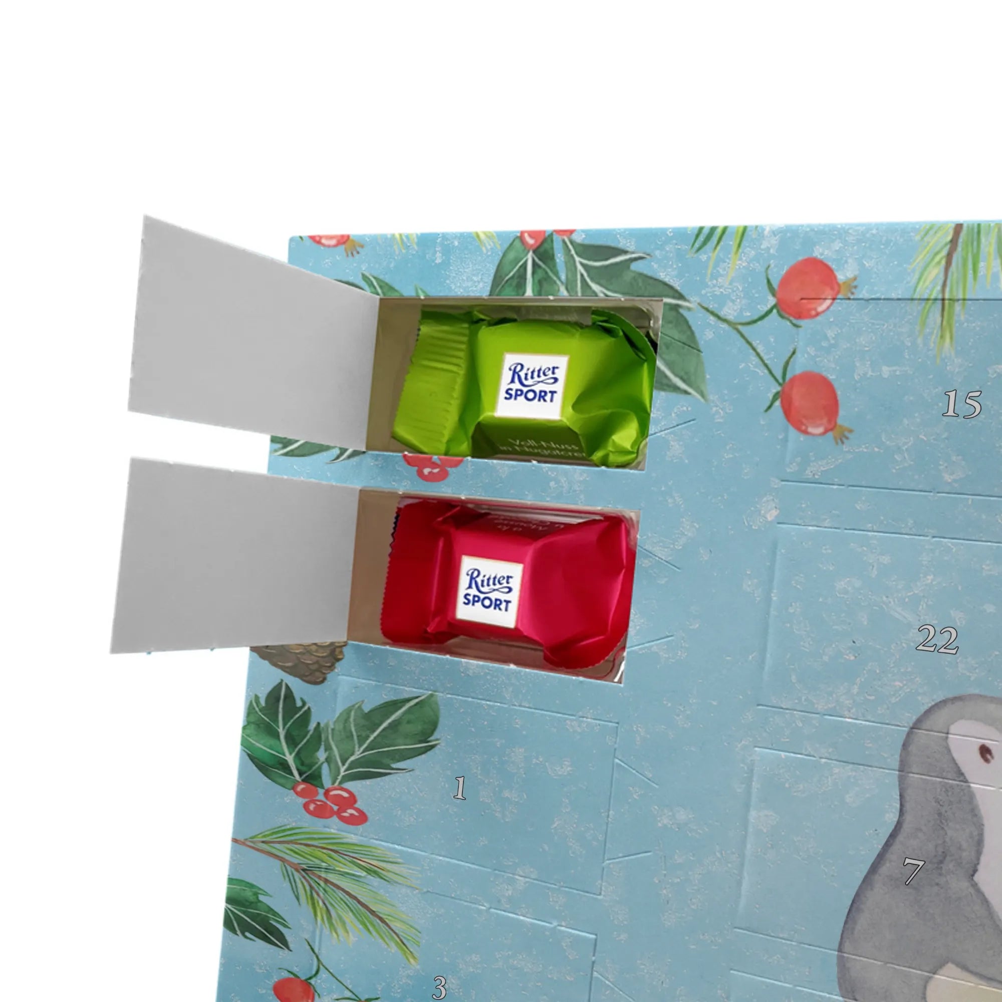 Unser entzückender Schokoladen Adventskalender von Mr. & Mrs. Panda ist das perfekte Highlight für die Adventszeit. Bedruckt mit wunderschönen Motiven & Sprüchen von Mr. & Mrs. Panda zaubert er dir ein Lächeln an jedem Tag im Dezember. Der Kalender ist nicht personalisierbar, überzeugt aber durch brillante Druckqualität mit seidenmatter Oberflächenveredelung und sorgsame bedruckte Seitenflächen. Die stabile Verarbeitung macht ihn zu einem dekorativen Hingucker. Maße: 325 mm x 225 mm x 27 mm. Besonders praktisch: Er kann aufgehängt oder aufgestellt werden, ganz nach deinem Geschmack und Platzangebot. Gefüllt ist der Adventskalender mit Ritter Sport Schokowürfeln – in verführerischen Sorten wie Mousse au Chocolat, Schoko Crisp, Voll-Nuss in Nougatcreme, Karamell Duo, Joghurt und Erdbeer-Joghurt. Wichtiger Hinweis: Es handelt sich um einen Kalender gefüllt mit Ritter Sport Schokolade, nicht um einen Kalender der Marke Ritter Sport. Schenk ihn Freunden, der Familie oder gönn dir selbst eine süße Vorfreude: kleine Schokoladenmomente, liebevoll verpackt von Mr. & Mrs. Panda.