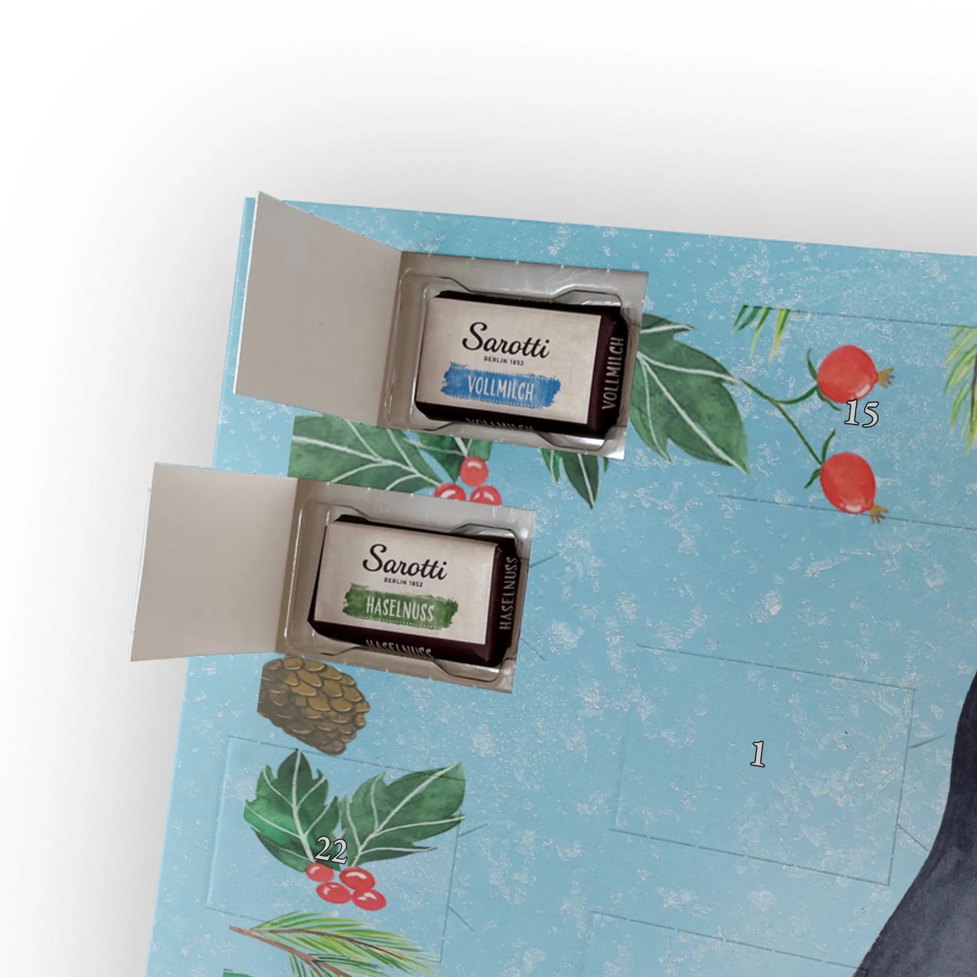 🐼 Schoko-Adventskalender: Liebevolles Design, seidenmatt, brillanter Druck – ein Hingucker.