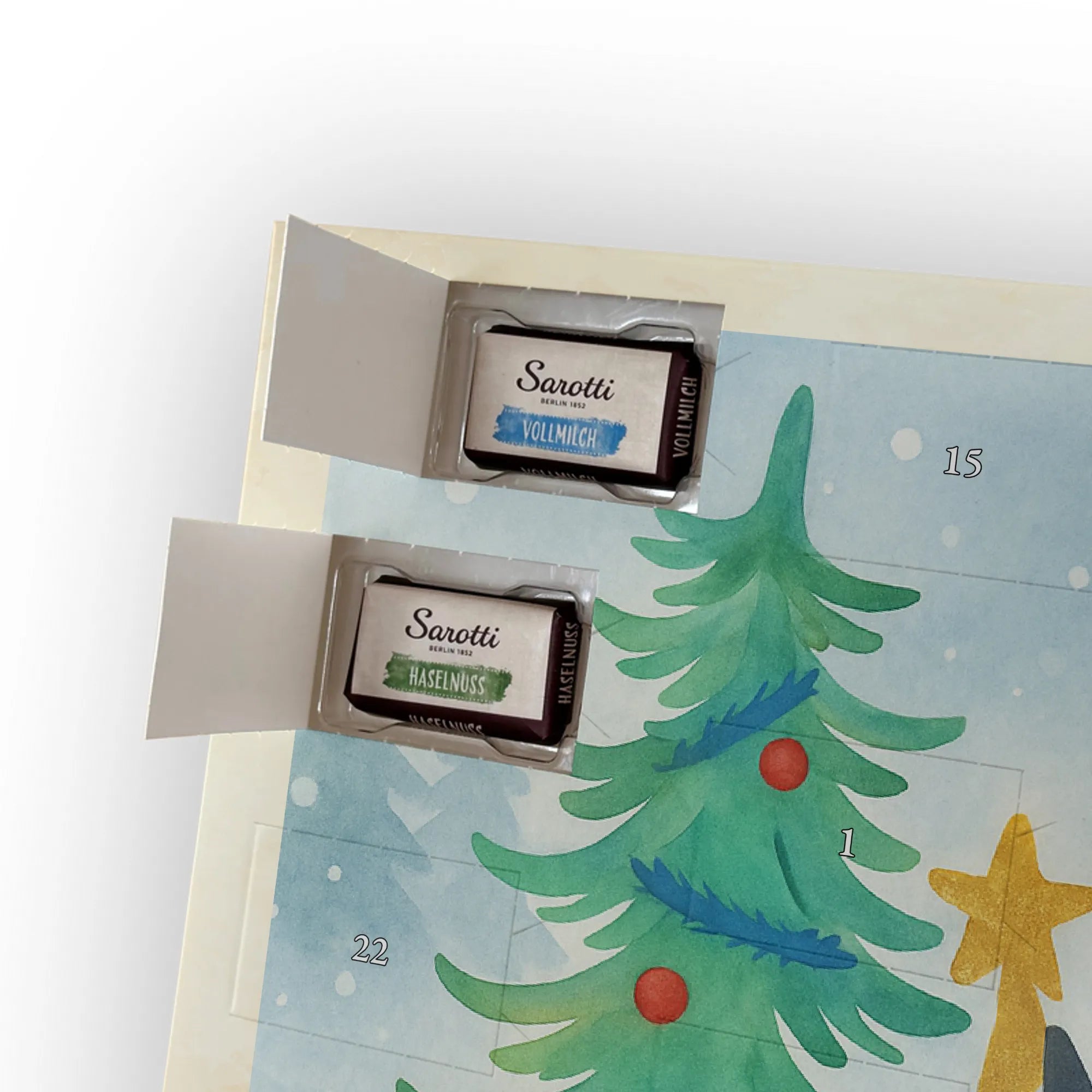 🐼 Adventskalender mit Schokolade: Liebevoll bedruckt, seidenmatter Lack, edles Design.