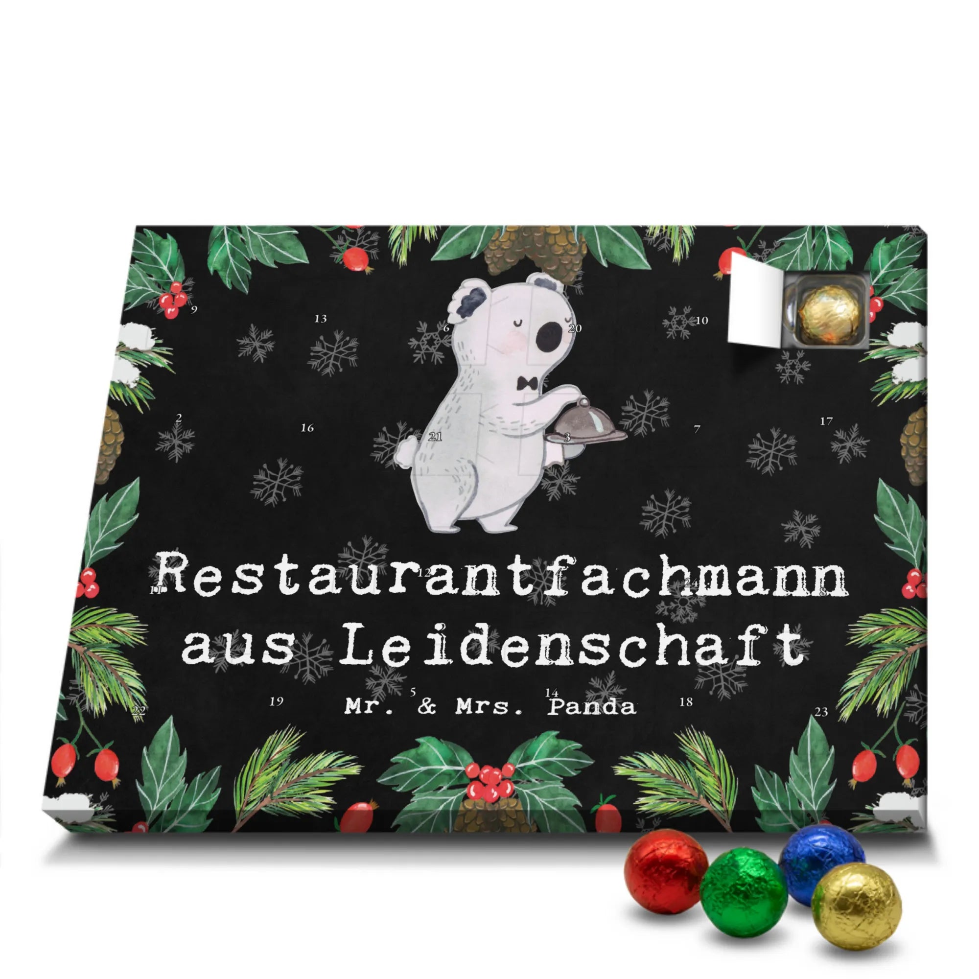 🐼 ADVENTSKALENDER SCHOKOLADE: Liebevoll bedruckt, seidenmatter Look, 325×225×27 mm.