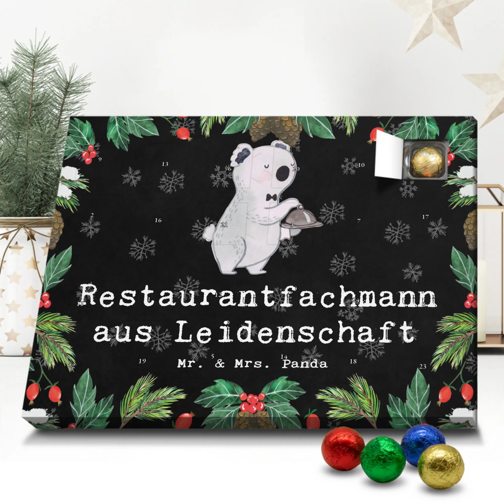 Wunderschöner Adventskalender mit Schokolade von Mr. & Mrs. Panda – für alle, die Advent und Design lieben. Dieser Adventskalender mit Schokolade ist liebevoll bedruckt mit wunderschönen Motiven & Sprüchen von Mr. & Mrs. Panda und ist nicht personalisierbar, aber mit viel Liebe zum Detail gefertigt. Brillante Druckqualität mit seidenmatter Oberflächenveredelung sorgt für einen edlen Look, und die bedruckten Seitenflächen geben dem Kalender eine besondere Optik. Maße: 233 mm x 178 mm x 24 mm. Dank seiner stabilen Verarbeitung kannst du ihn aufstellen oder ganz einfach aufhängen – Besonderheit: kann aufgehängt oder aufgestellt werden. Gefüllt mit MARKENNAMEN Schokolade und leckeren Schokoladenkugeln, bringt er jeden Tag ein kleines Glückserlebnis. Wichtige Hinweise: (Kann Spuren von Haselnüssen, Mandeln, Gluten und Soja enthalten!), bitte kühl und trocken lagern. Ob als Geschenk, Mitbringsel oder Adventsdeko – dieser Kalender zaubert ein Lächeln und sorgt für gemütliche Vorfreude. Viel Freude beim Entdecken der süßen Überraschungen wünscht dir Mr. & Mrs. Panda!