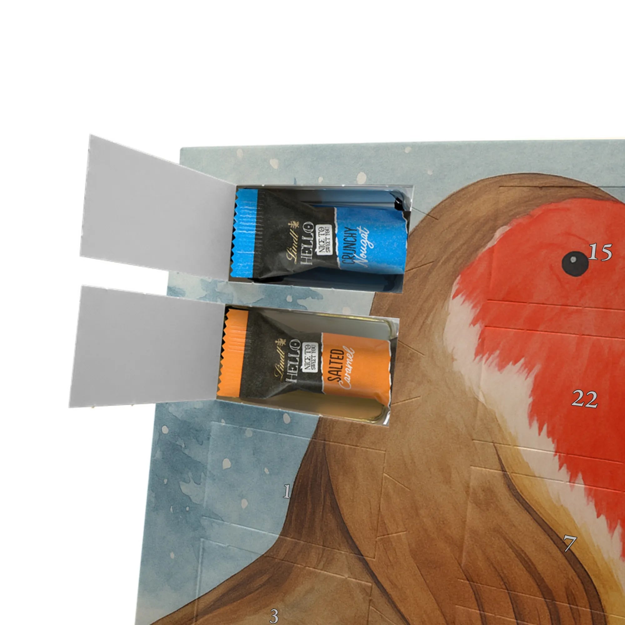 Mach die Adventszeit süßer: Entdecke jetzt unseren liebevoll bedruckten Adventskalender und genieße 24 Tage voller Lindt Hello Mini Sticks!