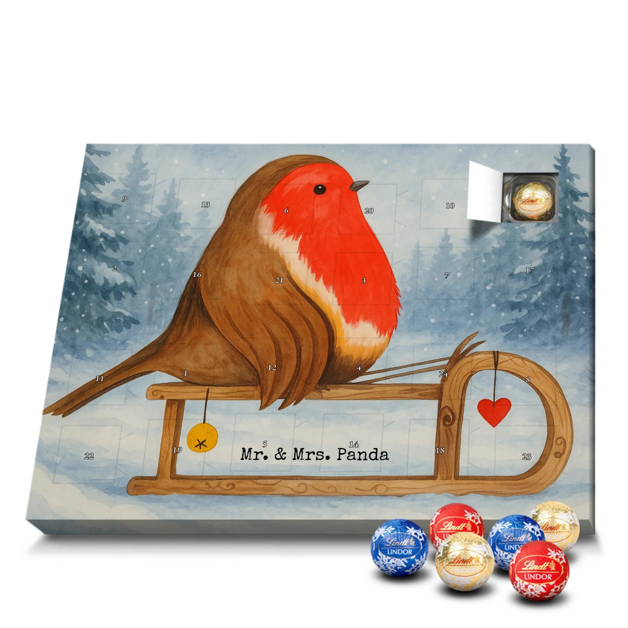 Schoko Adventskalender Rotkehlchen Schlitten Design - Lindt HELLO - mit Spruch