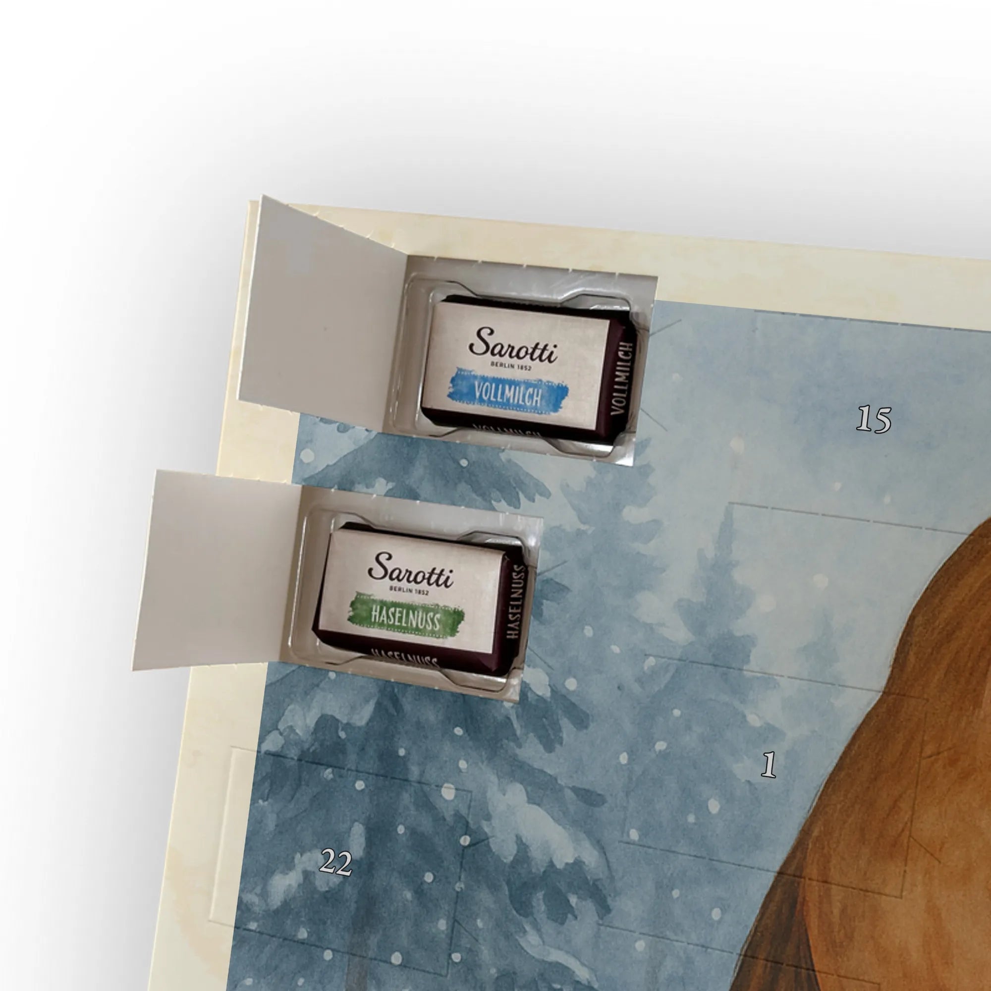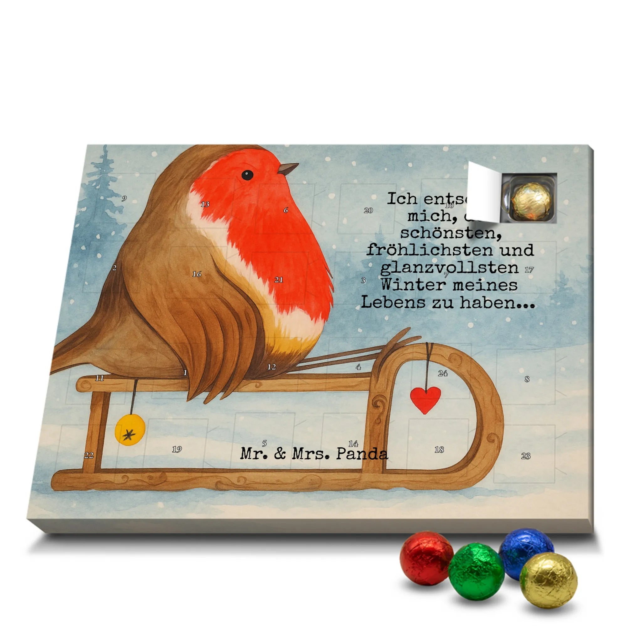 🐼 Schoko-Adventskalender: Liebevolles Design, seidenmatt, brillanter Druck – ein Hingucker.