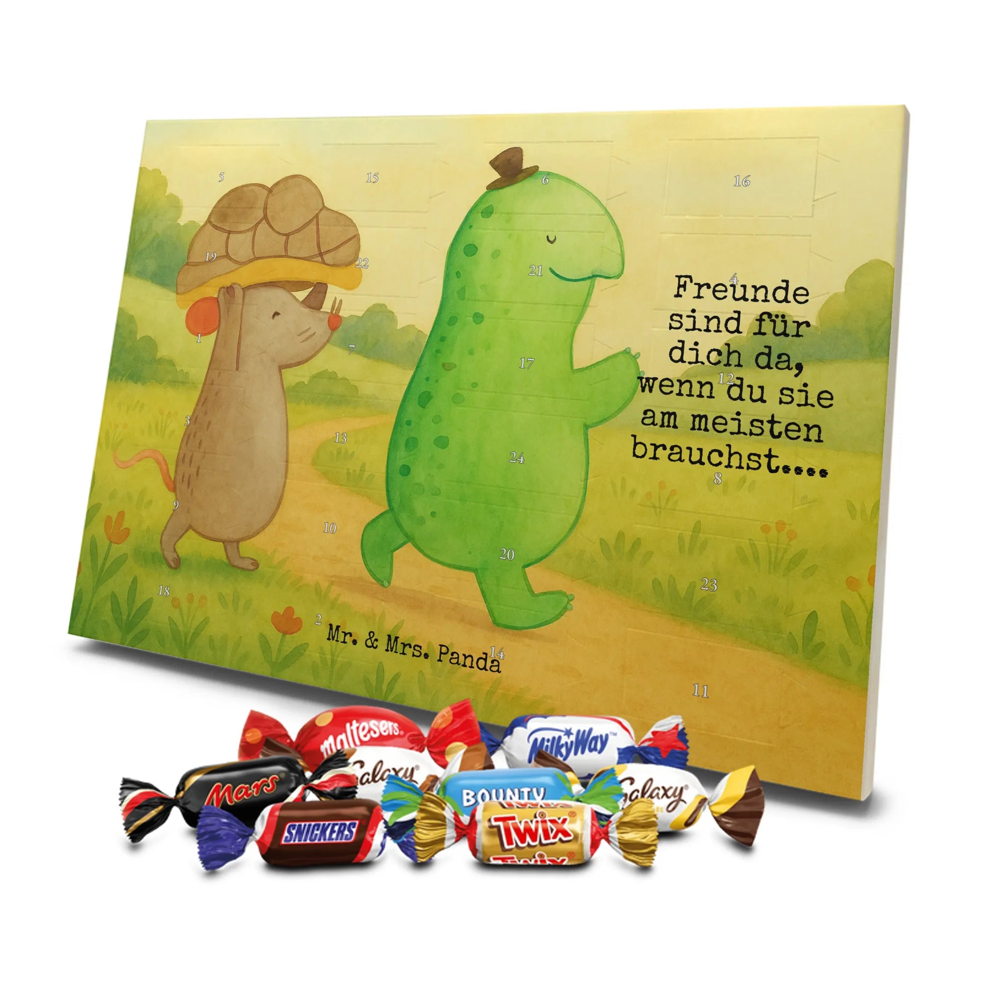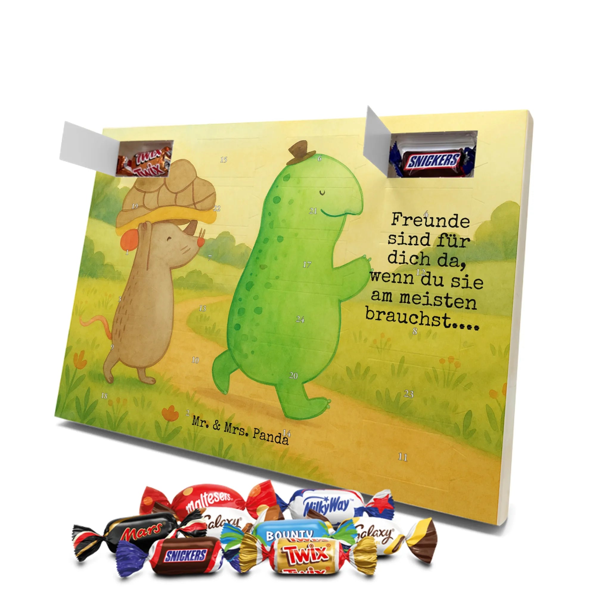Mach die Adventszeit süßer: Entdecke unseren bedruckten Schokoladen Adventskalender von Mr. & Mrs. Panda und verschenke täglich Freude!