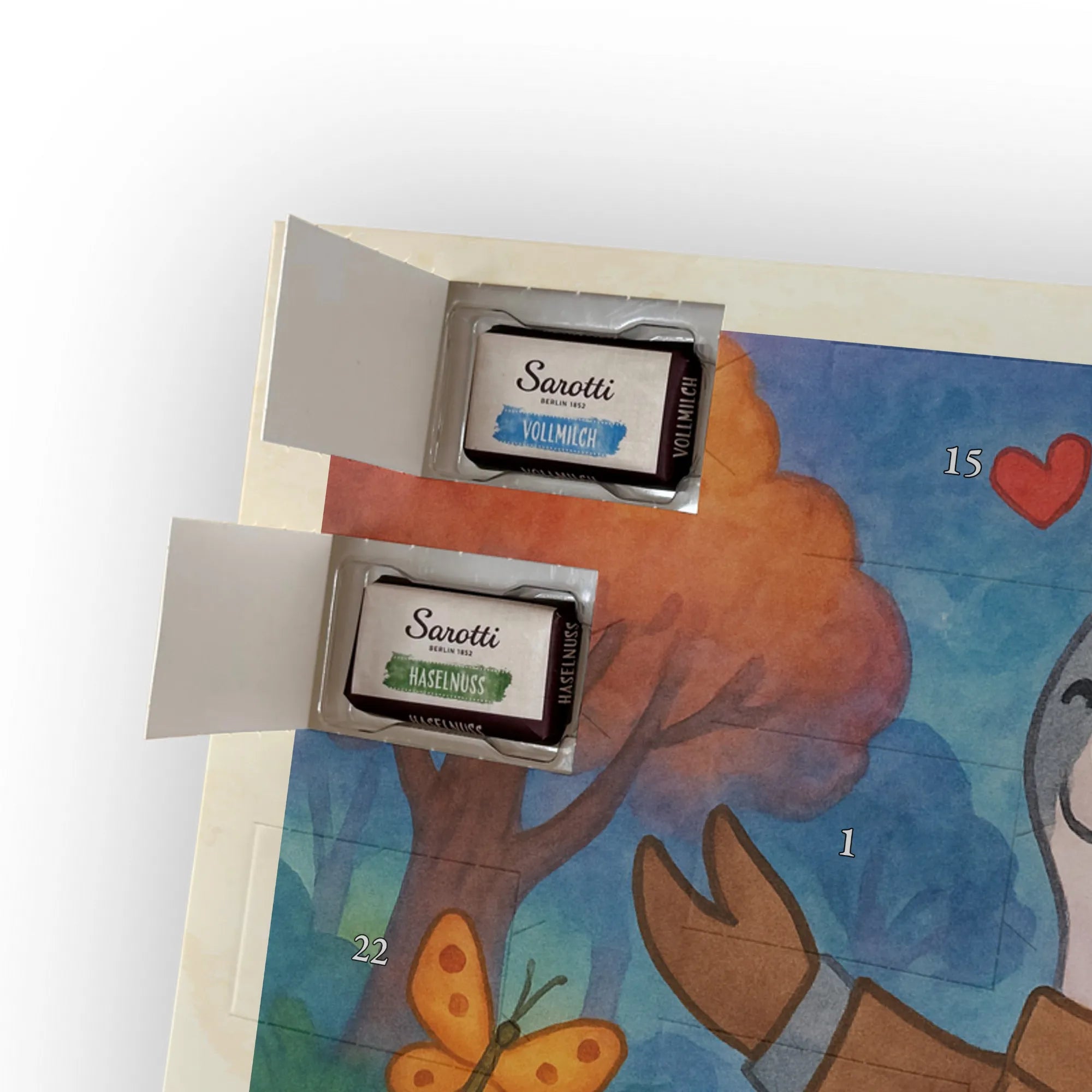 🐼 SCHOKOLADEN-ADVENTSKALENDER: Edler, seidenmatter Druck mit liebevollen Illustrationen.