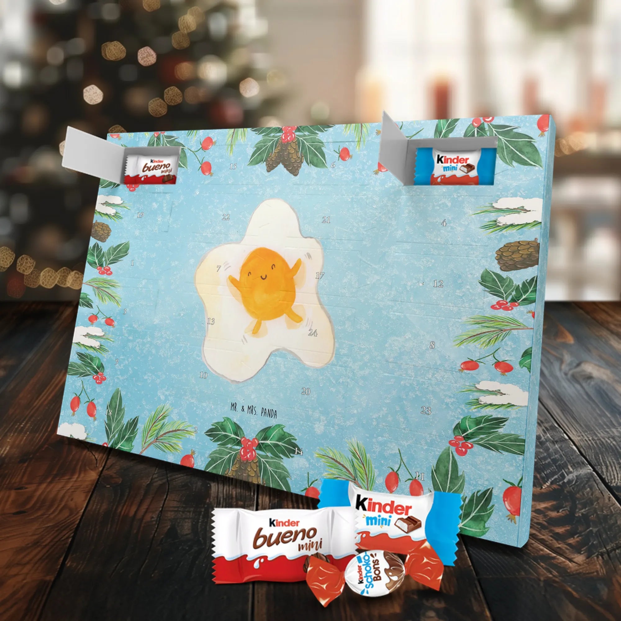 Unser Schokoladen Adventskalender von Mr. & Mrs. Panda bringt Charme und süße Überraschungen in deine Adventszeit. Liebevoll bedruckt mit wunderschönen Motiven & Sprüchen von Mr. & Mrs. Panda, ist dieser Kalender nicht personalisierbar, dafür aber mit hochwertiger Verarbeitung und stimmigem Design. Die brillante Druckqualität mit seidenmatter Oberflächenveredelung verleiht jedem Motiv eine edle Optik, und die bedruckten Seitenflächen runden das Gesamtbild ab. Maße: 355 mm x 245 mm x 11 mm. Eine praktische Besonderheit: kann aufgehängt oder aufgestellt werden – so passt er perfekt in jede Deko. Gefüllt mit Markenname Schokolade: Adventskalender gefüllt mit kinder® Schokolade. Inhalt: kinder® Schoko-Bons, kinder® Bueno mini und kinder® Schokolade mini. Mit 24 kleinen Leckereien hinter den Türchen ist dieser Kalender ideal für Kinder und alle Naschkatzen. Er eignet sich wunderbar als Adventsgeschenk oder als liebevolle Aufmerksamkeit für Kollegen und Freunde. Gönn dir oder anderen eine süße Adventszeit mit diesem bezaubernden Schokoladen Adventskalender!