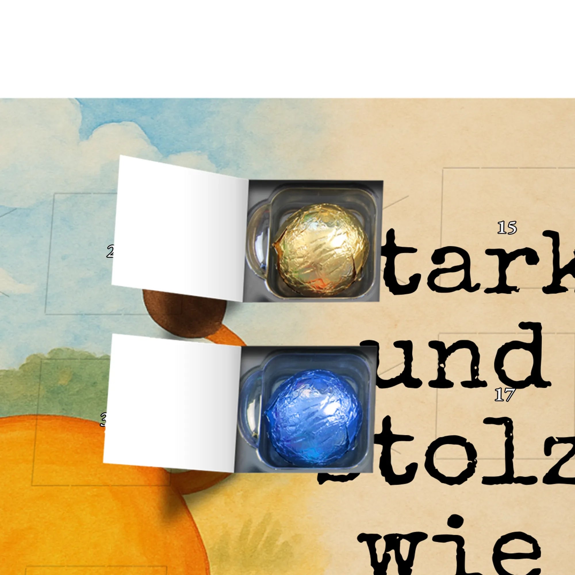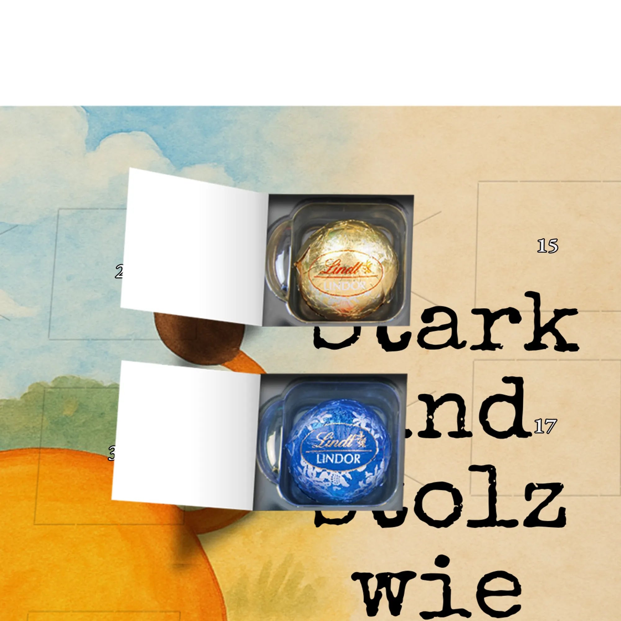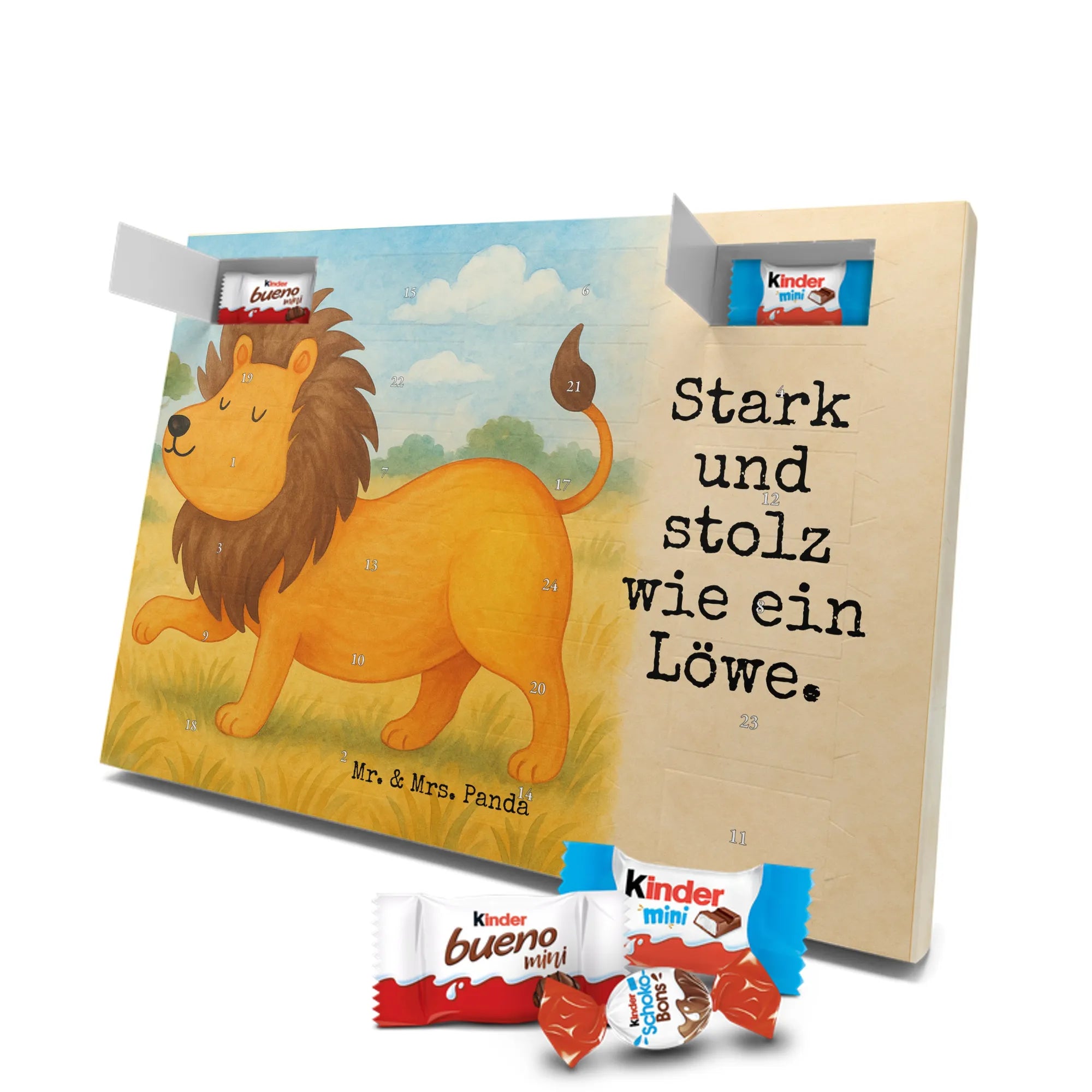Ob als süßer Adventskalender mit Pralinen-Ersatz oder als Schokoladenkalender für Nostalgiker: Dieser Adventskalender vereint Qualität, Stil und liebevolle Illustration. Verschenke Freude, jeden Tag ein kleines Türchen, und erinnere jemanden daran, wie stark und stolz er ist – genau wie ein Löwe.