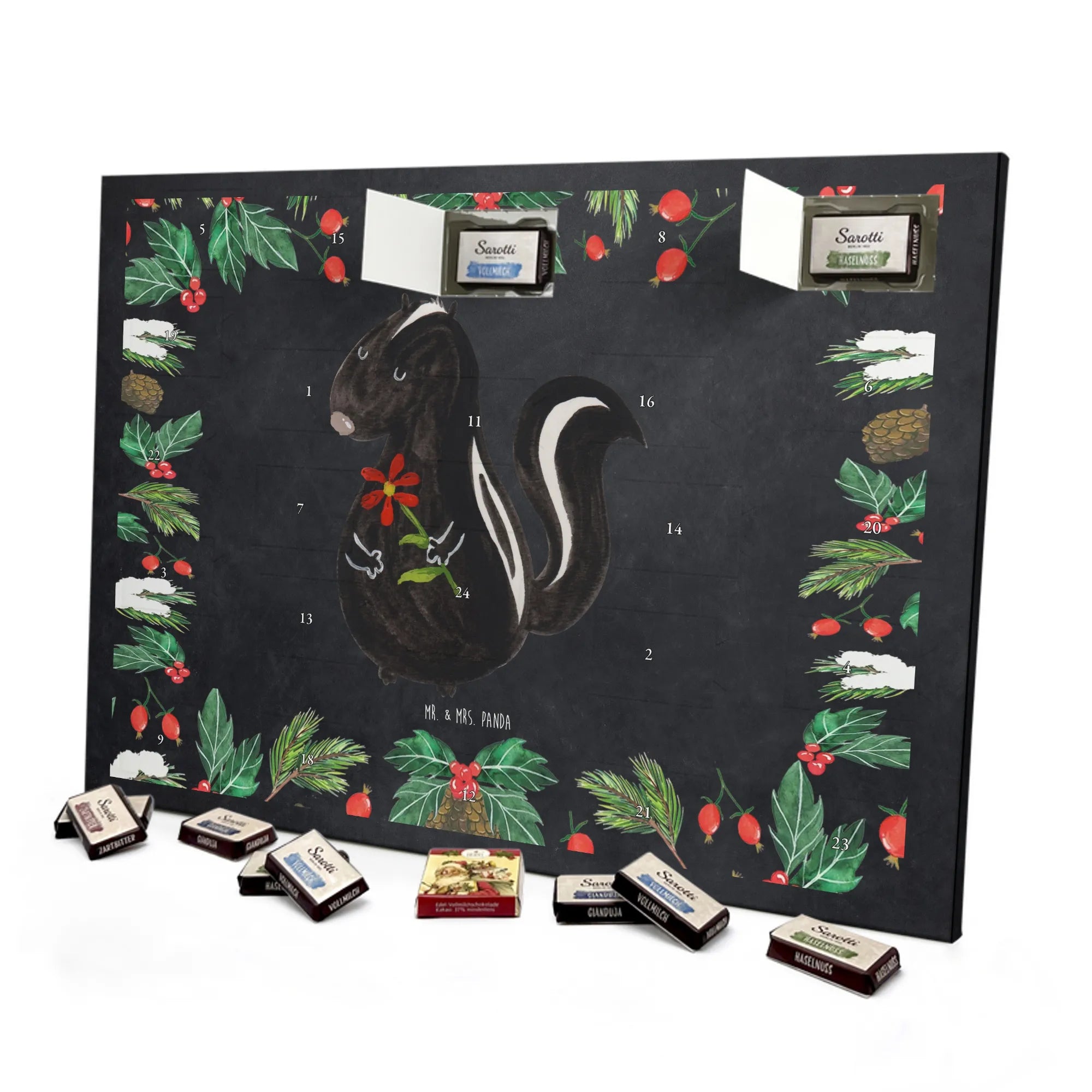 Weihnachts Kalender Stinktier Blume - Lindt HELLO - mit Spruch - Kreidetafel