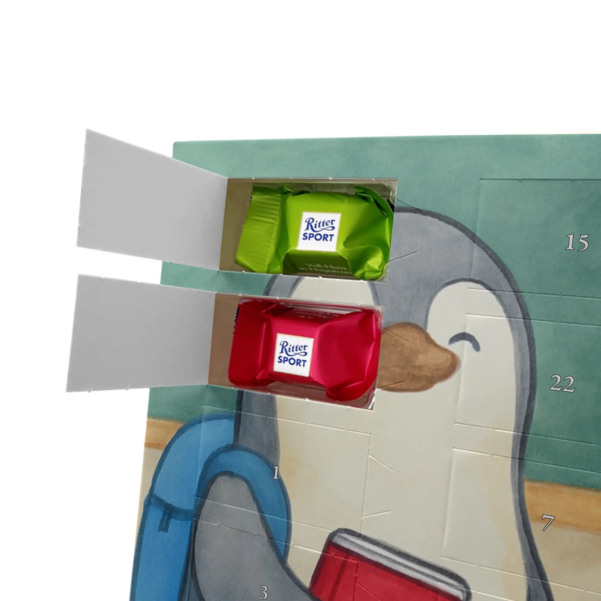 Schon unser Schoko-Adventskalender von Mr. & Mrs. Panda gesehen? Ein liebevoll gestalteter Kalender, bedruckt mit wunderschönen Motiven & Sprüchen, der deine Adventszeit versüßt. Der Kalender ist nicht personalisierbar, überzeugt aber durch brillante Druckqualität mit seidenmatter Oberflächenveredelung und bedruckte Seitenflächen für ein rundum schönes Erscheinungsbild. Maße: 325 mm x 225 mm x 27 mm. Du kannst ihn aufhängen oder aufstellen – ganz wie es dir gefällt. Gefüllt mit Ritter Sport Schokowürfeln in köstlichen Sorten: Mousse au Chocolat, Schoko Crisp, Voll-Nuss in Nougatcreme, Karamell Duo, Joghurt und Erdbeer-Joghurt. Bitte beachten: Es handelt sich um einen Kalender gefüllt mit Ritter Sport Schokolade, nicht um einen Kalender der Marke Ritter Sport. Ob als Geschenk oder für dich selbst – dieser Schoko-Adventskalender bringt täglich kleine Glücksmomente und süße Überraschungen.
